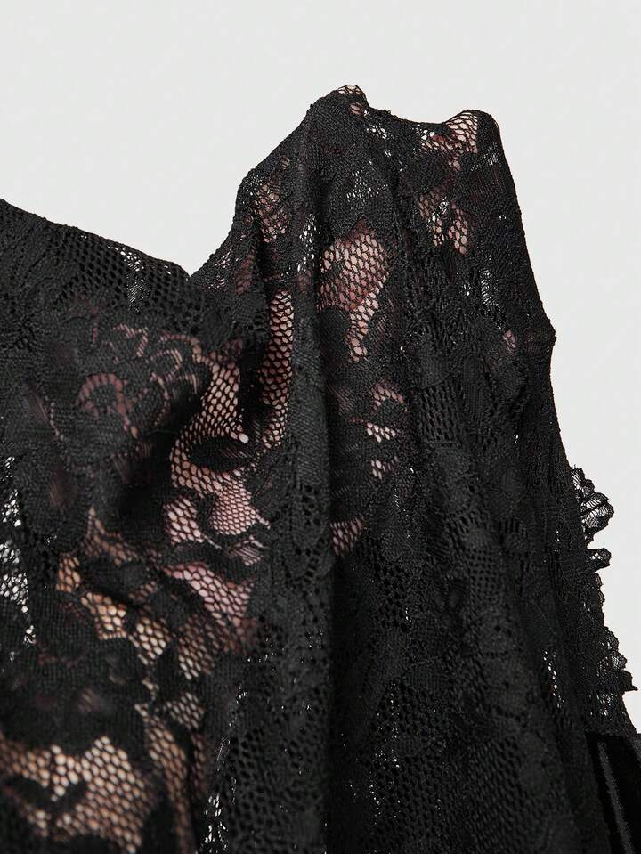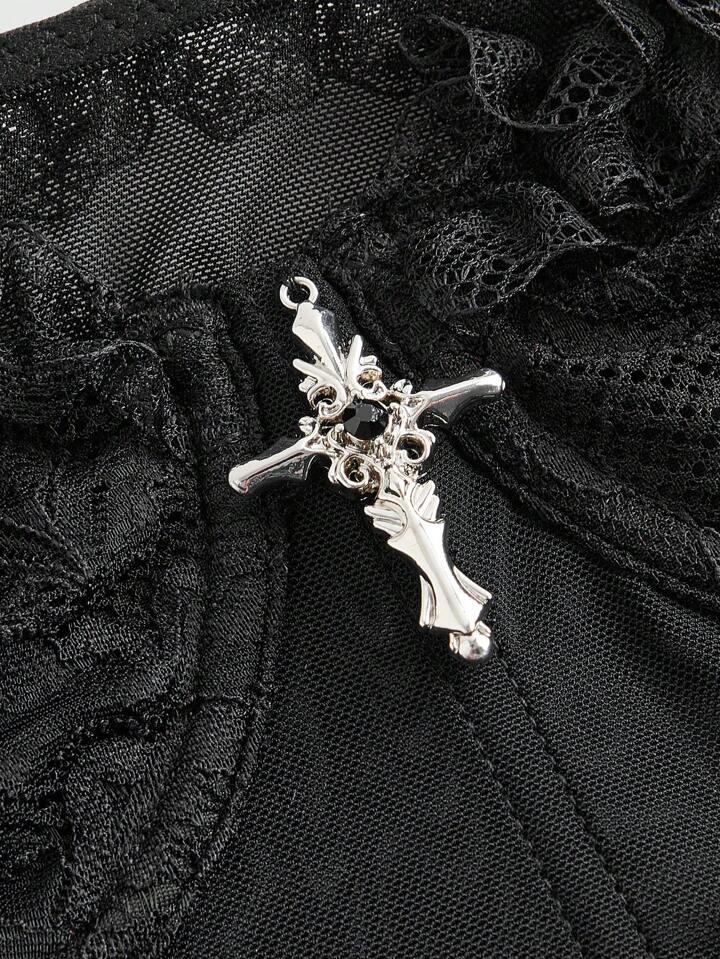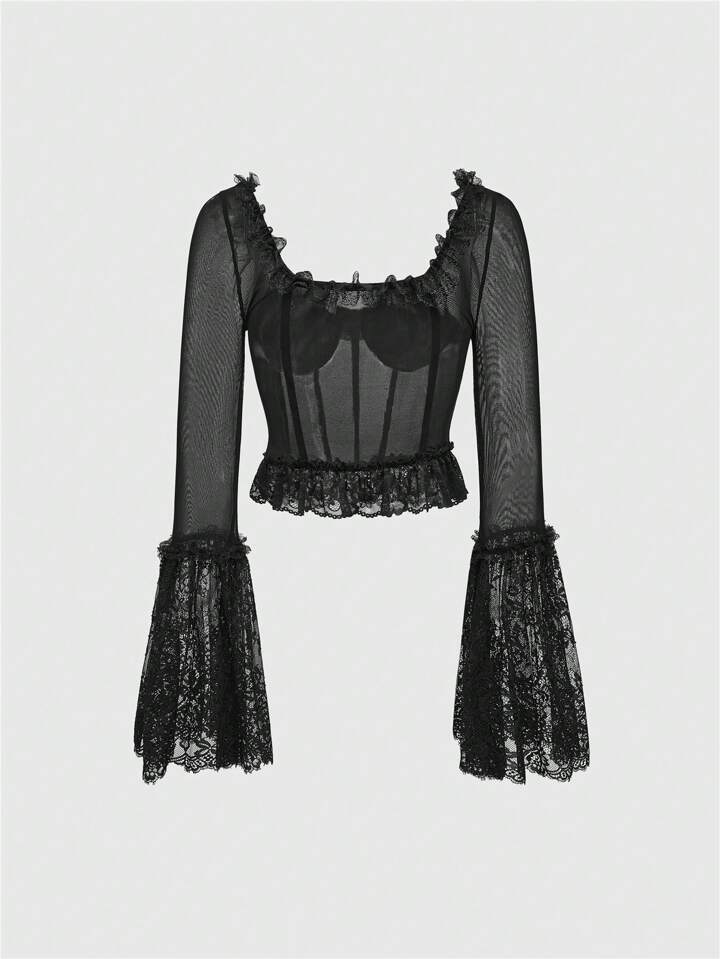 Sexy Gothic See-Through Fishnet And Lace Trim Waist Blouse For Women