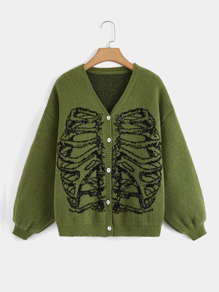 Skeleton Pattern Button Front Cardigan