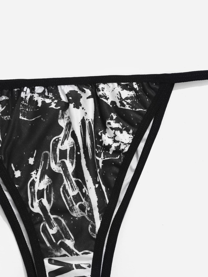 Skull & Chain Print Halter Tie Side Lingerie Set