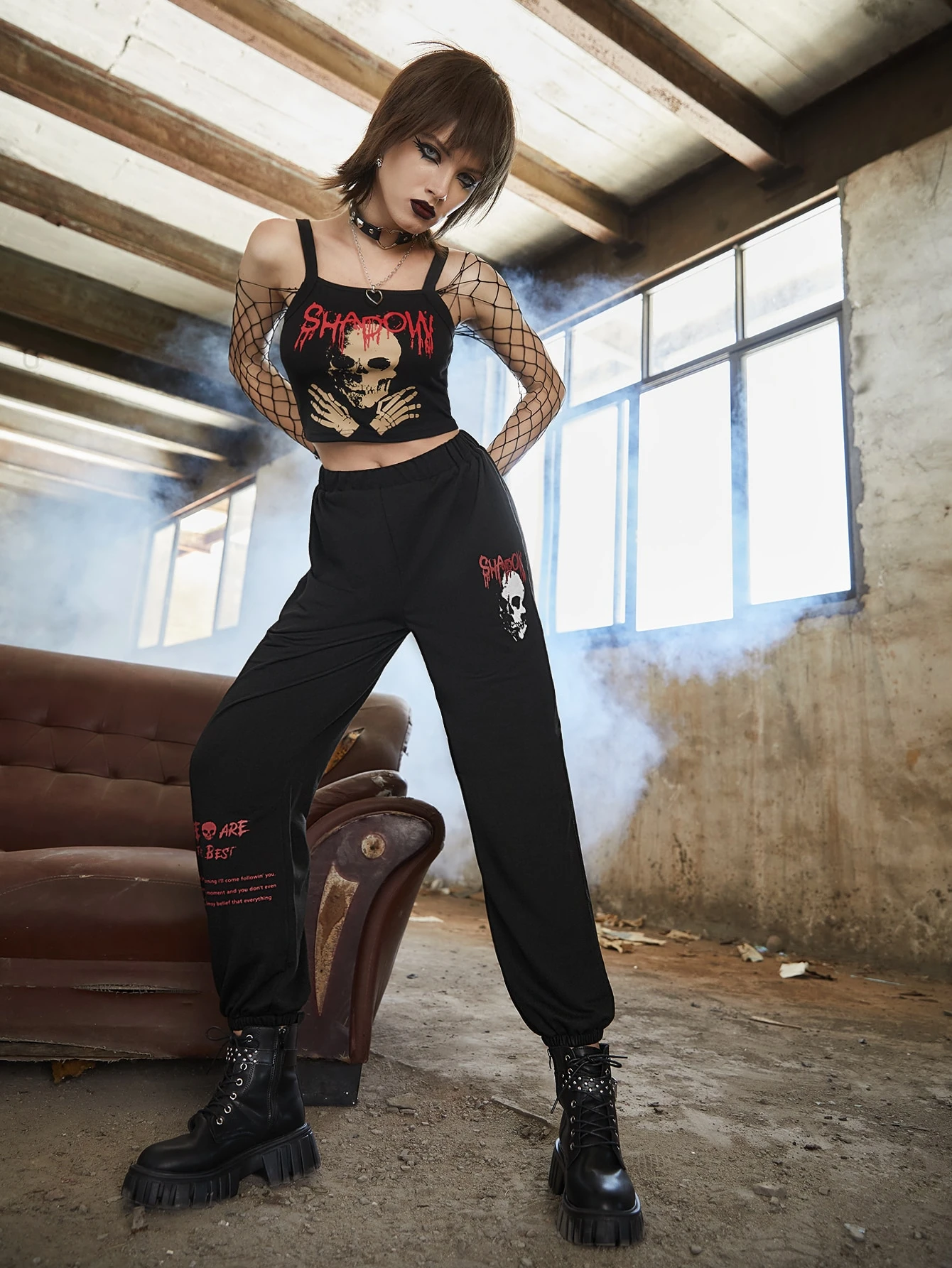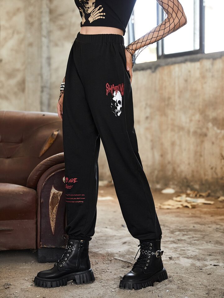 Skull & Letter Graphic Sweatpants