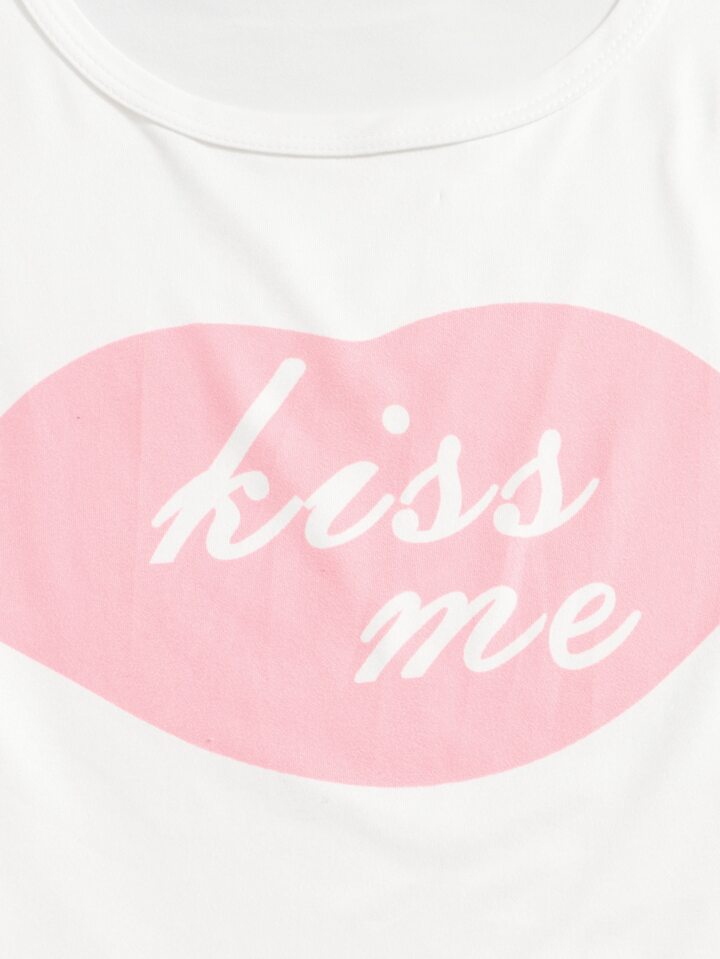 Slogan Lips Graphic Pajama Set