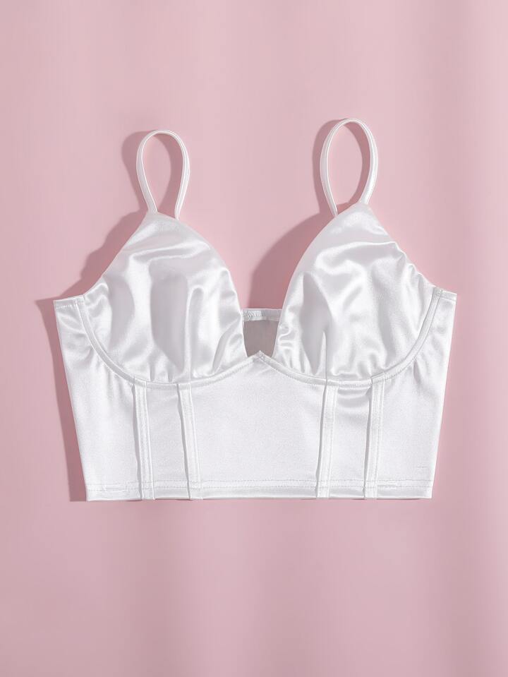 Solid Bustier Satin Crop Cami Top For Holiday Party Clothes