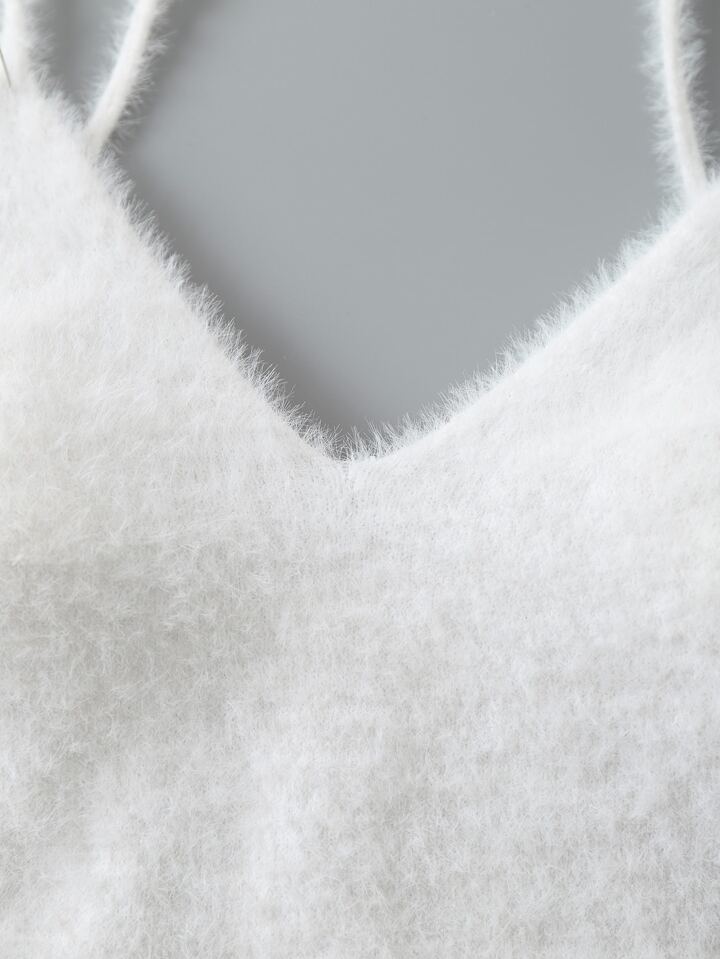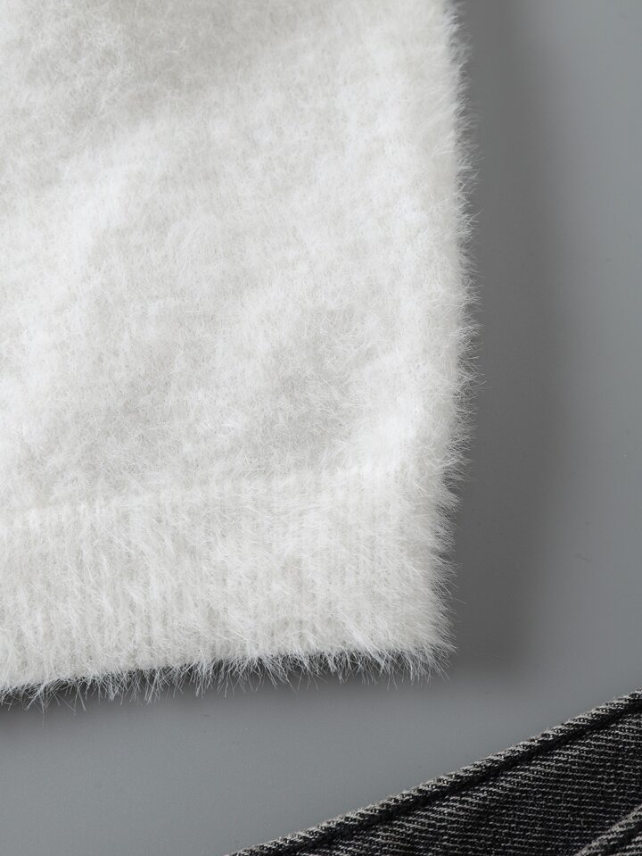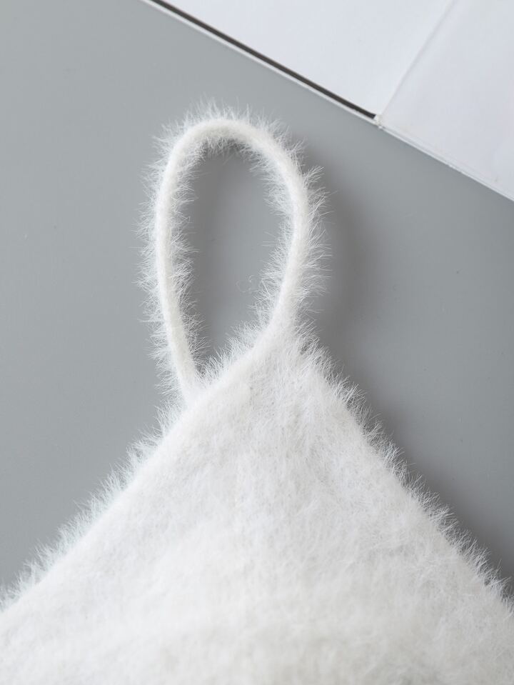 Solid Crop Fluffy Knit Top