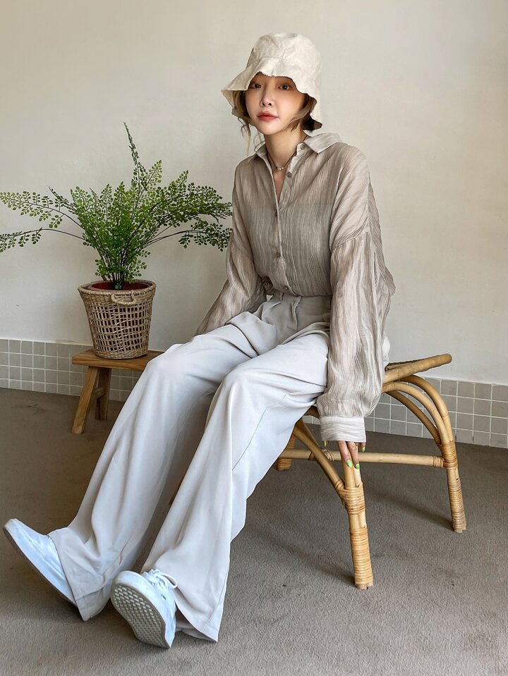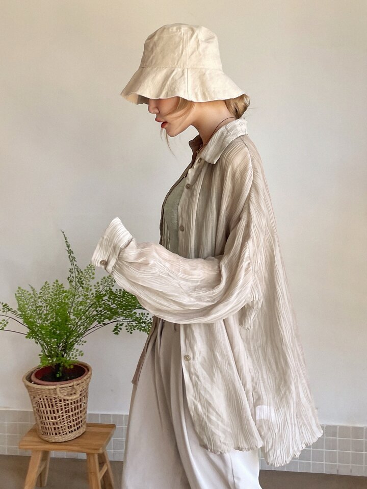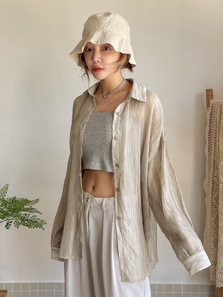 Solid Drop Shoulder Blouse Without Camisole