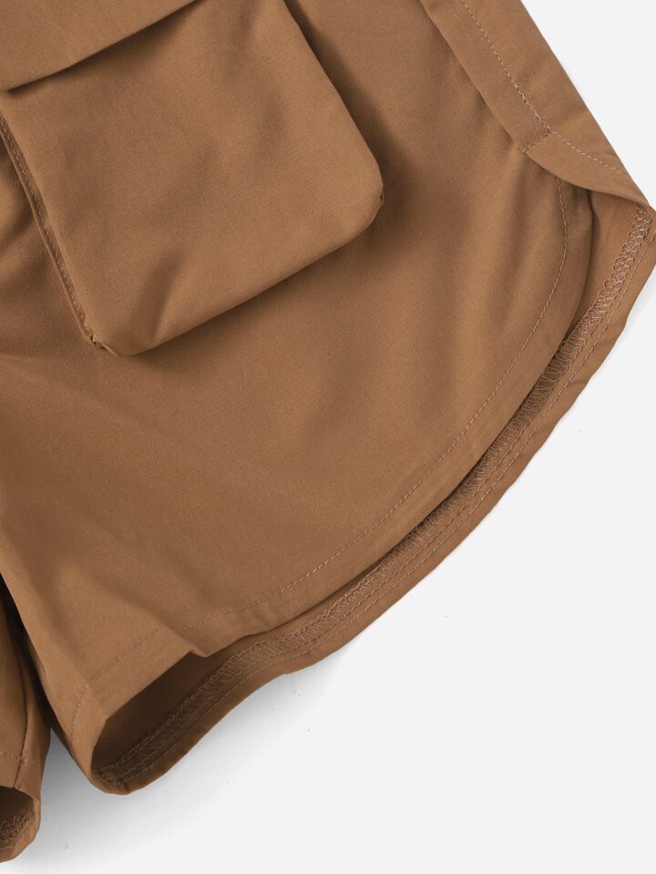 Solid Flap Pocket Shorts
