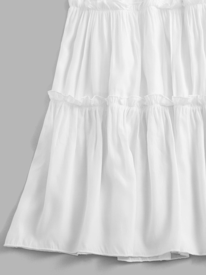 Solid Frill Skirt, School,Ladies Casual Frill Midi Loose High Waist White Viscose Plain Women Skirts,Spring/Summer,Casual Daily Wear