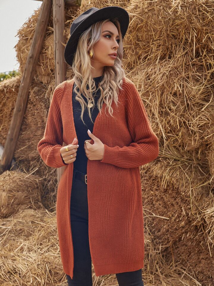 Solid Raglan Sleeve Cardigan,Long Sleeve Tops Fall Winter Cloth For Women