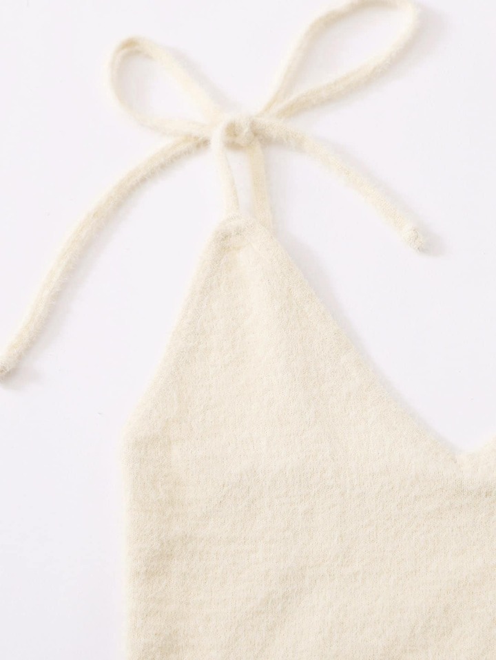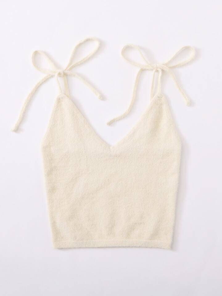 Solid Tie Straps Knit Cami Top