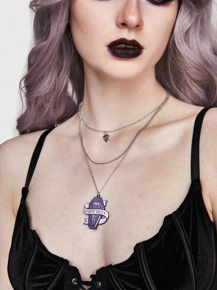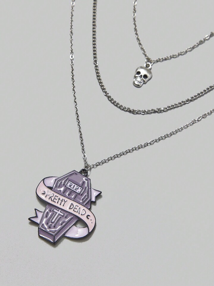 Sonchs Curiosities 2pcs Fashion Zinc Alloy Skull & Cross Decor Necklace For Women For Daily Decoration