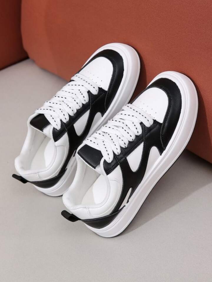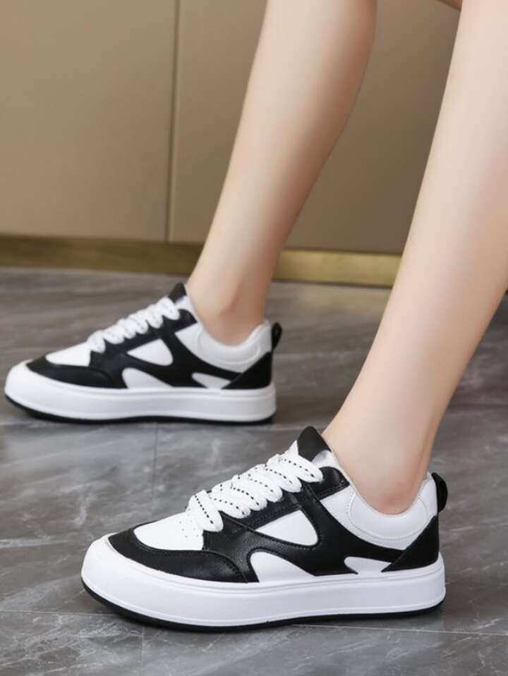 Sporty Skate Shoes For Women, Two Tone Patch Decor Lace Up Sneakers