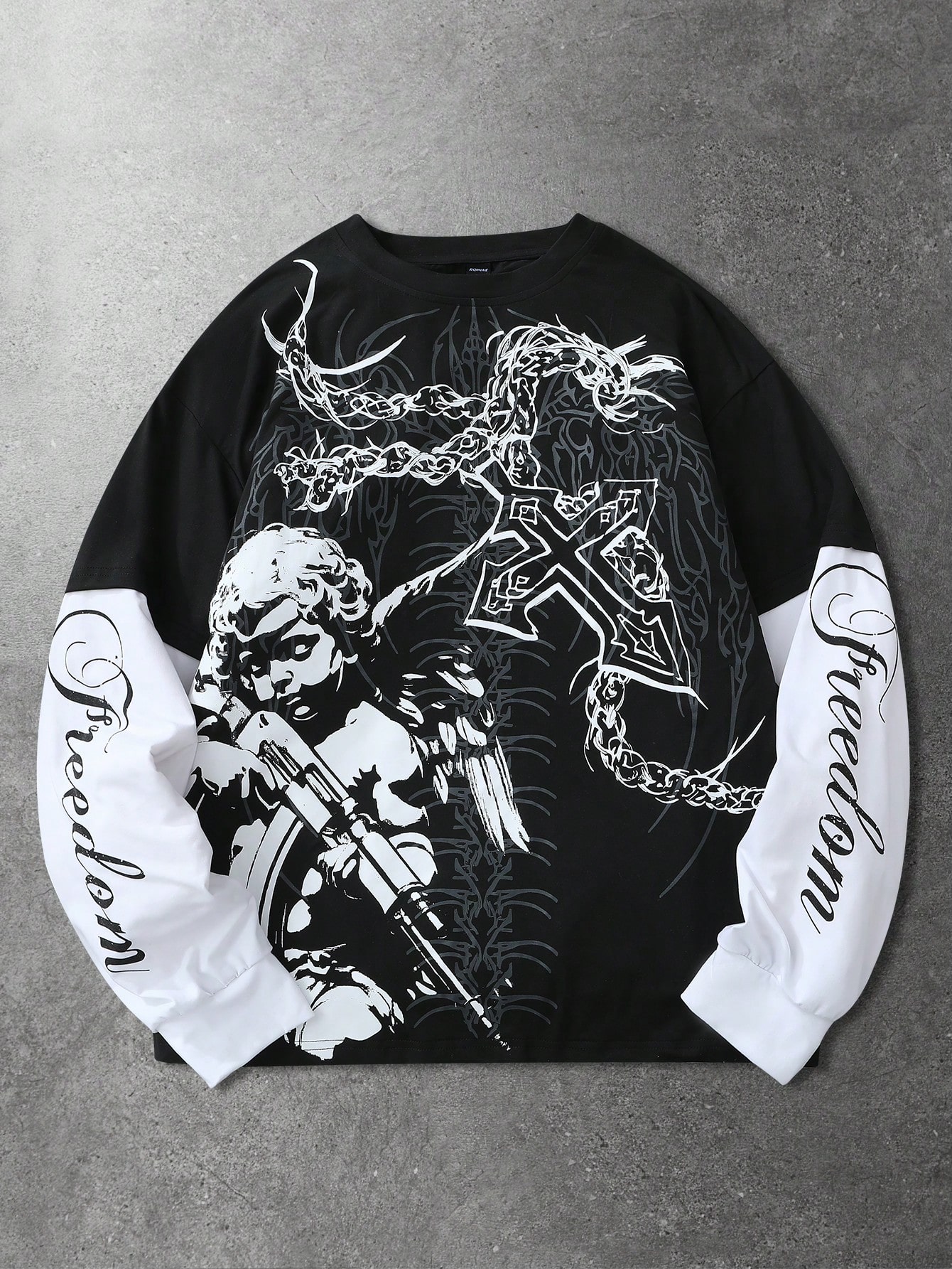 Spring Casual Graphic Men'S Casual Contrast Color Patchwork Angel Letter Print T-Shirt, Autumn