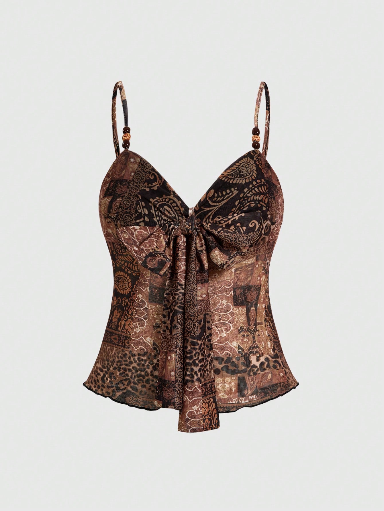 Spring/Summer Women's Vintage Boho Hippie Paisley Print Butterfly Decor Sheer Backless Camisole For Music Festival