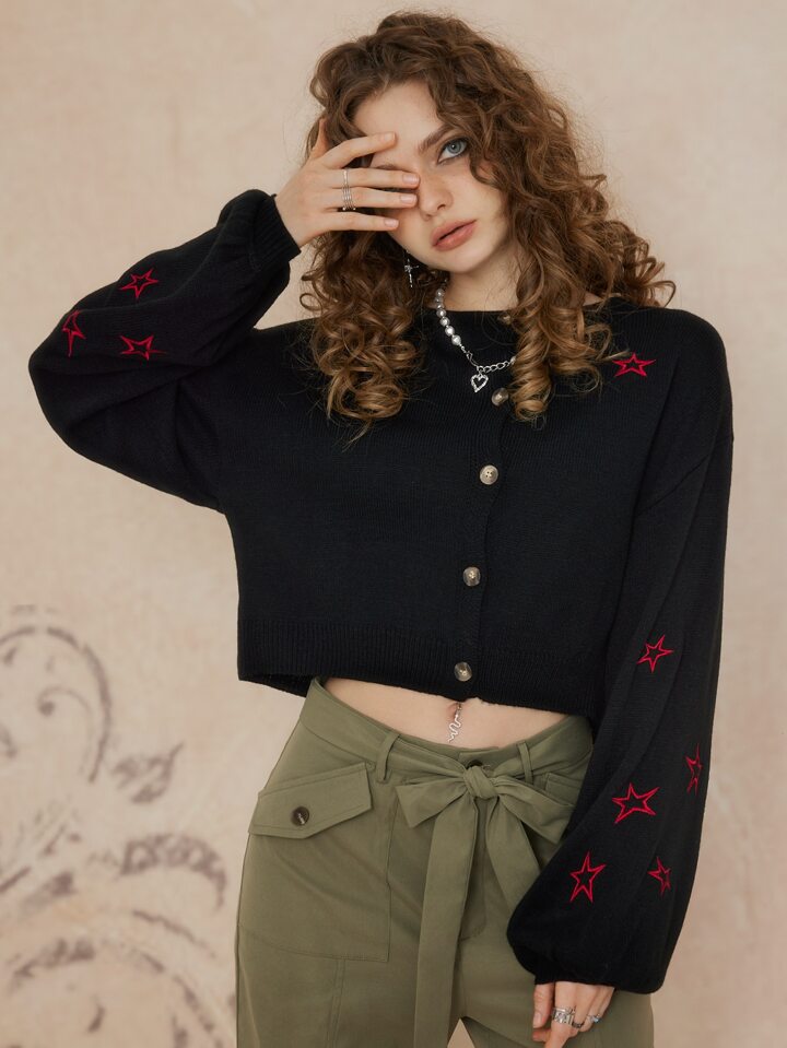 Star Embroidery Button Front Cardigan