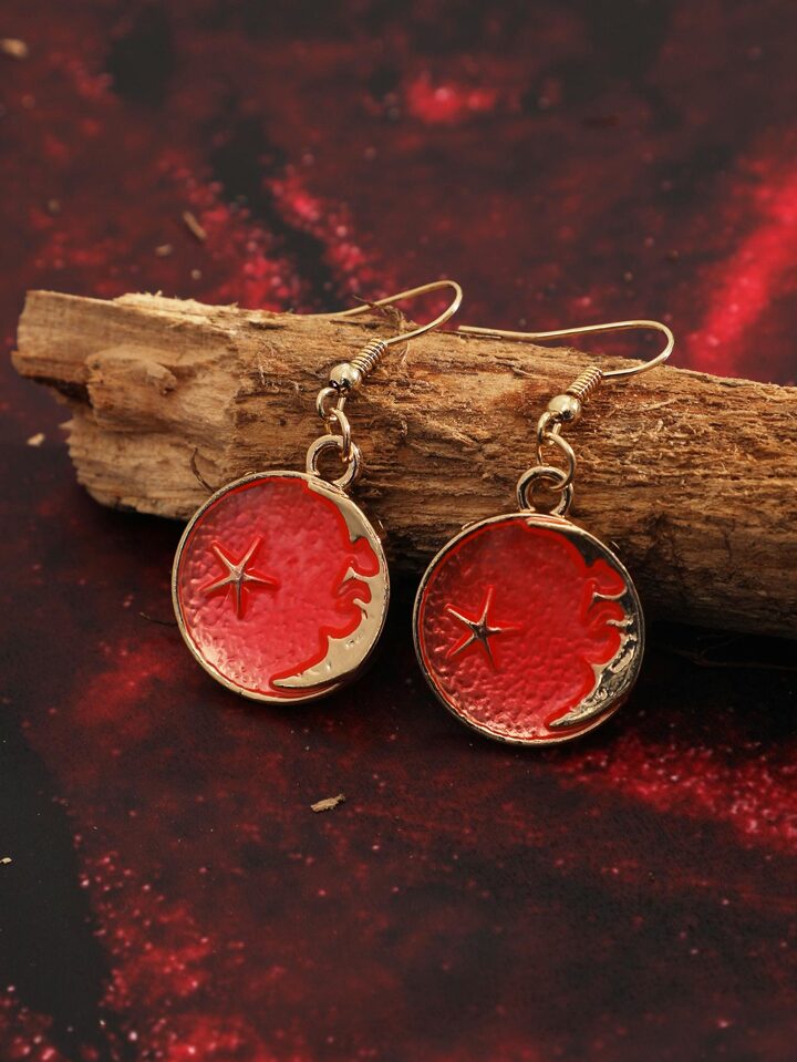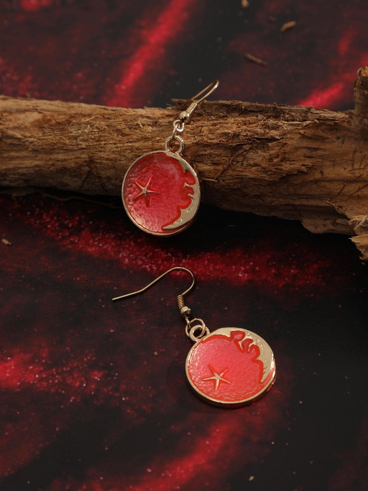 Star & Moon Detail Round Drop Earrings