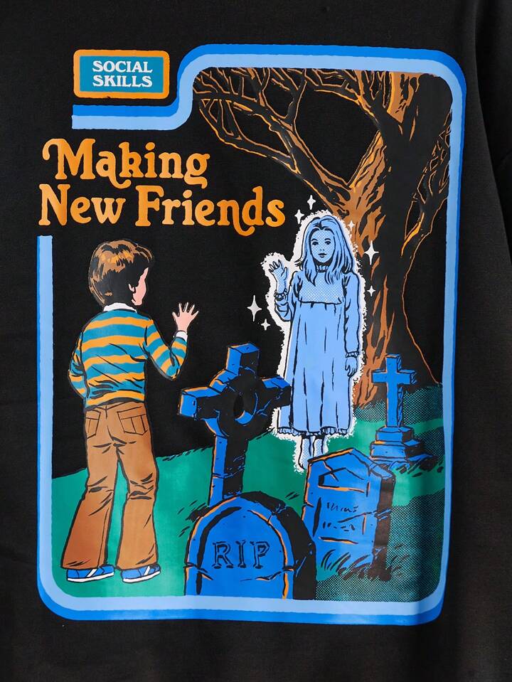 Stevenrhodes Fashionable Street Style Ghost Printed Hooded Long Sleeve Zippered Sweatshirt