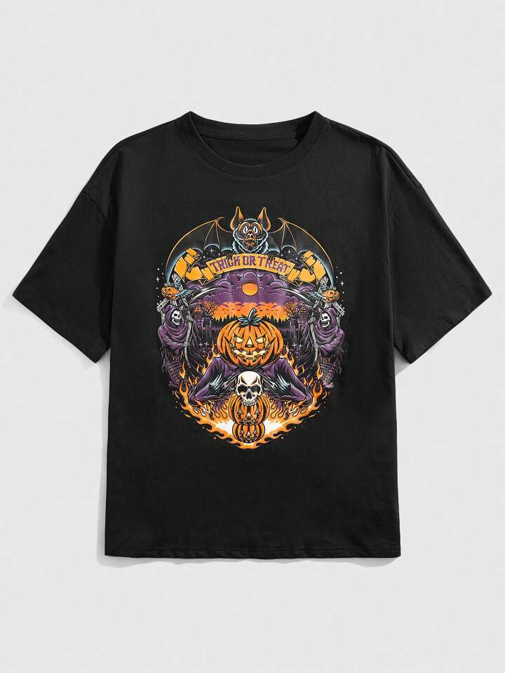 Straight Ahead Halloween Letter Skull Graphic Tee