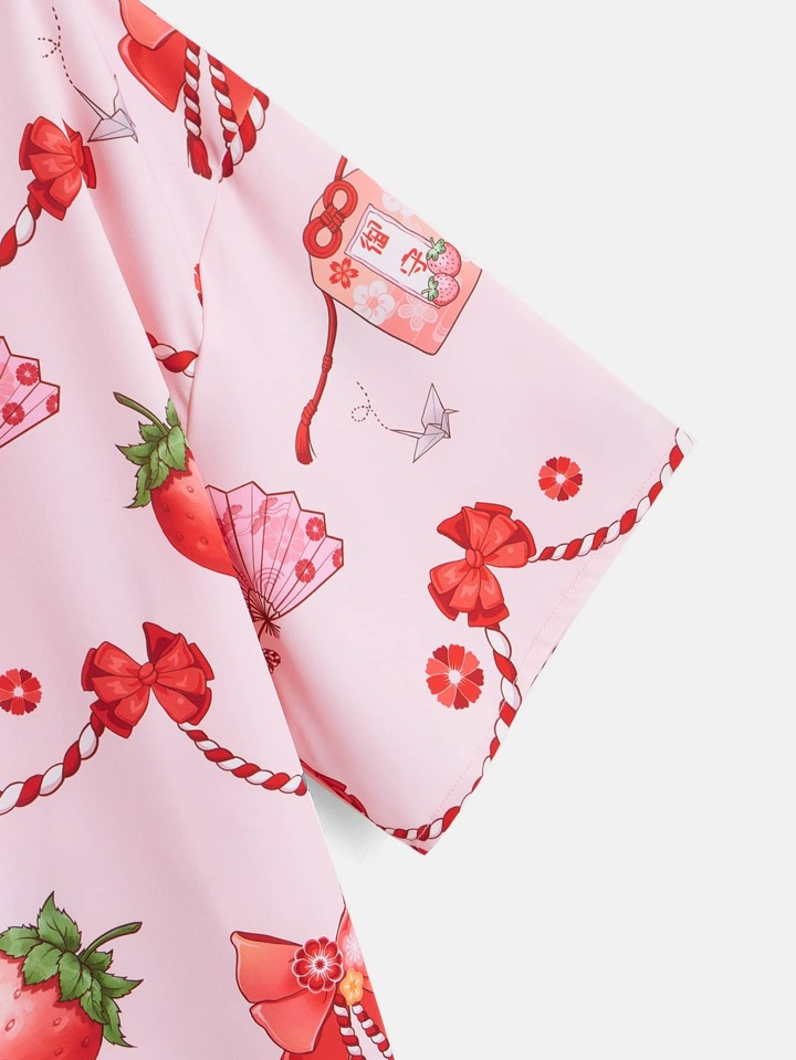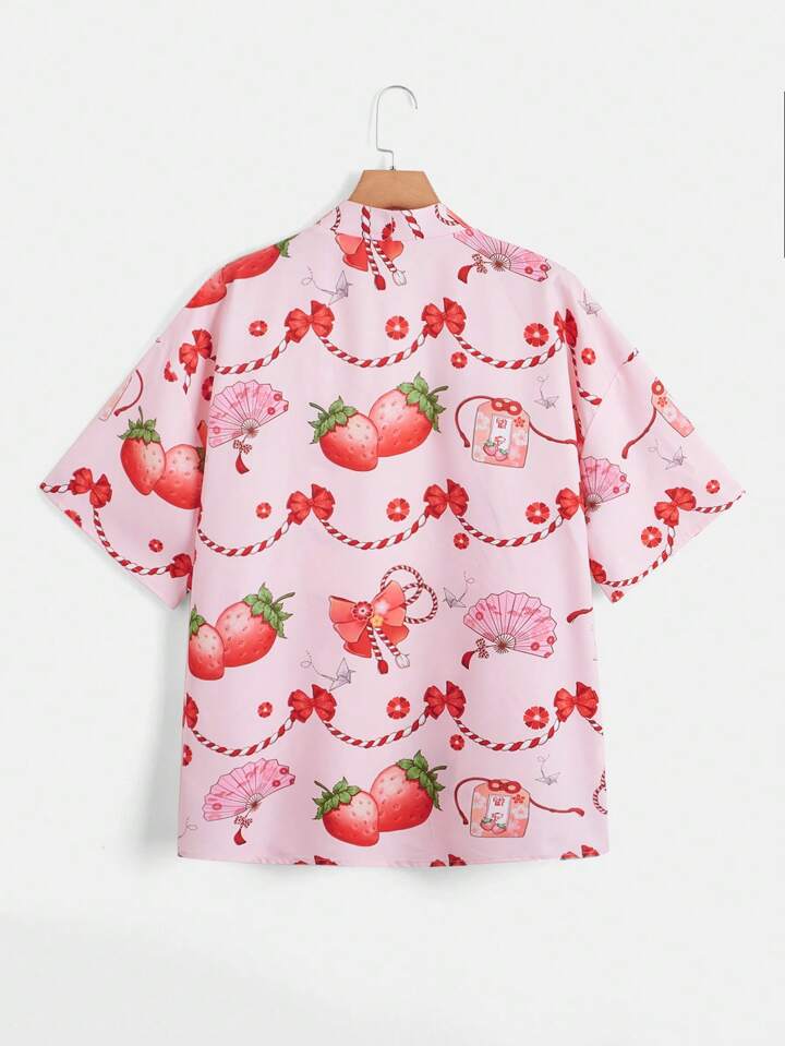 Strawberry Print Drop Shoulder Kimono
