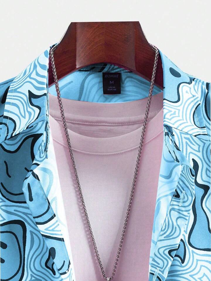 Street Life 2pcs/Set Men's Casual Short Sleeve Shirt And Shorts, Spring Summer, School