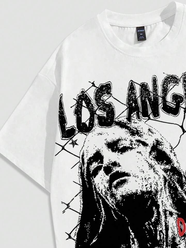 Street Life 2pcs/Set Men's Portrait Graphic Print Short Sleeve T-Shirt And Shorts, Suitable For Everyday Wear In Spring/Summer
