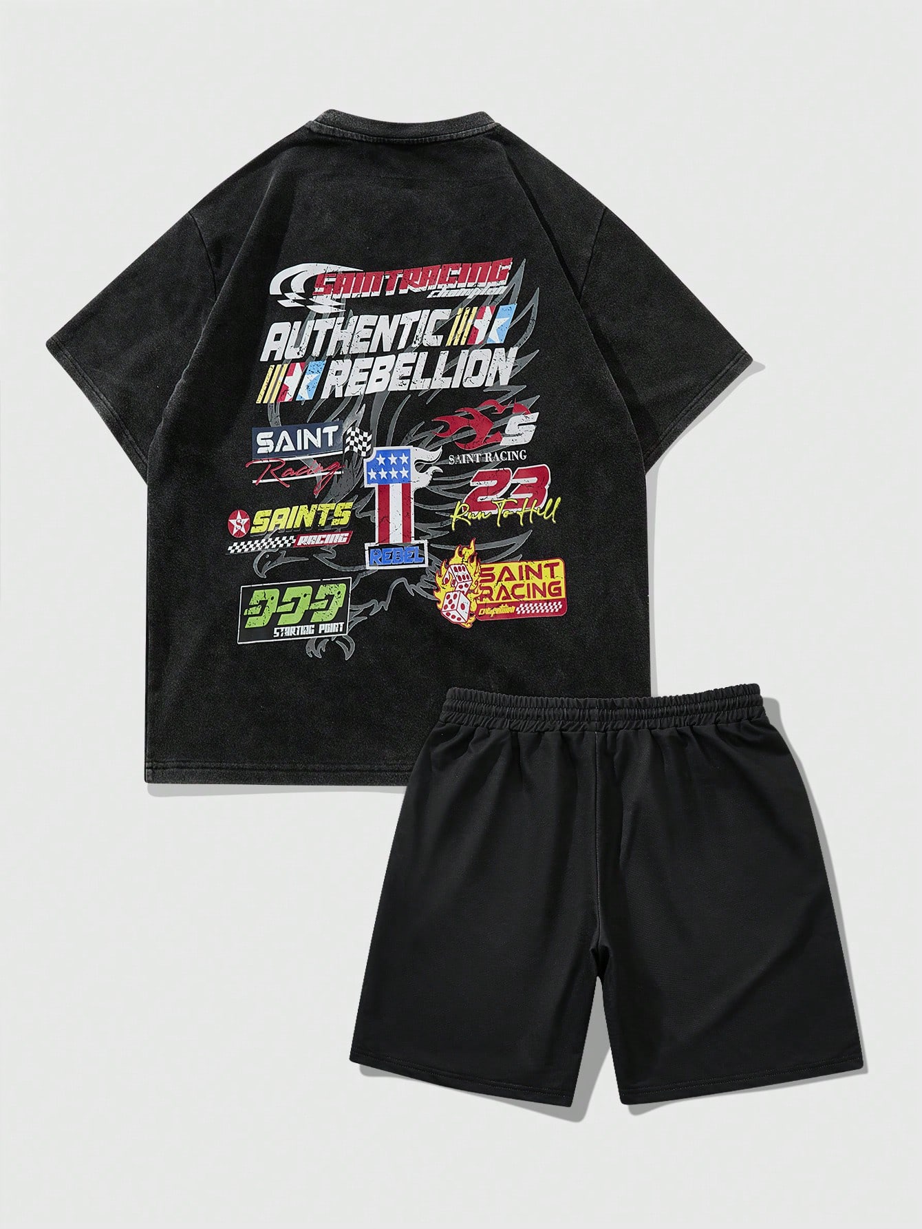 Street Life 2pcs/Set Men's Racing Street Letter Graphic Short Sleeve T-Shirt And Shorts Set, Casual For Spring & Summer