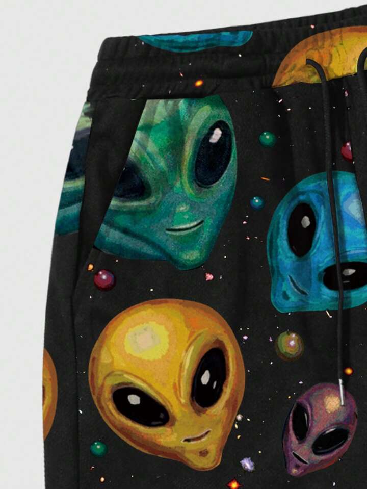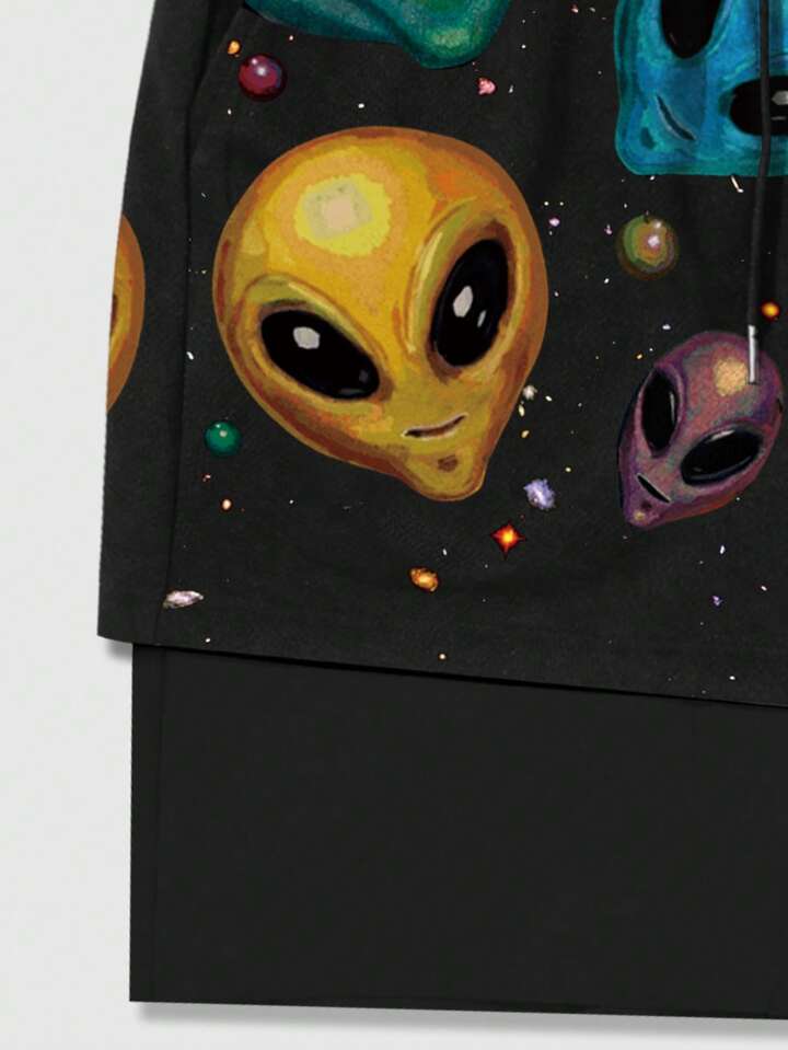 Street Life Alien Print Drawstring Waist Men's Casual Shorts With 2 In 1 Design