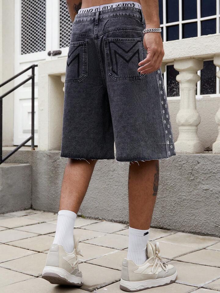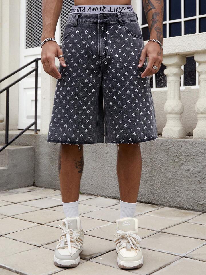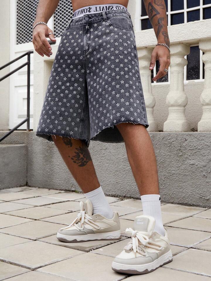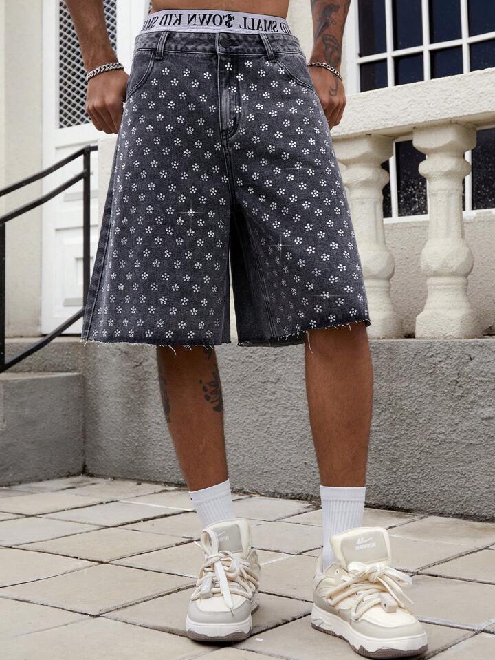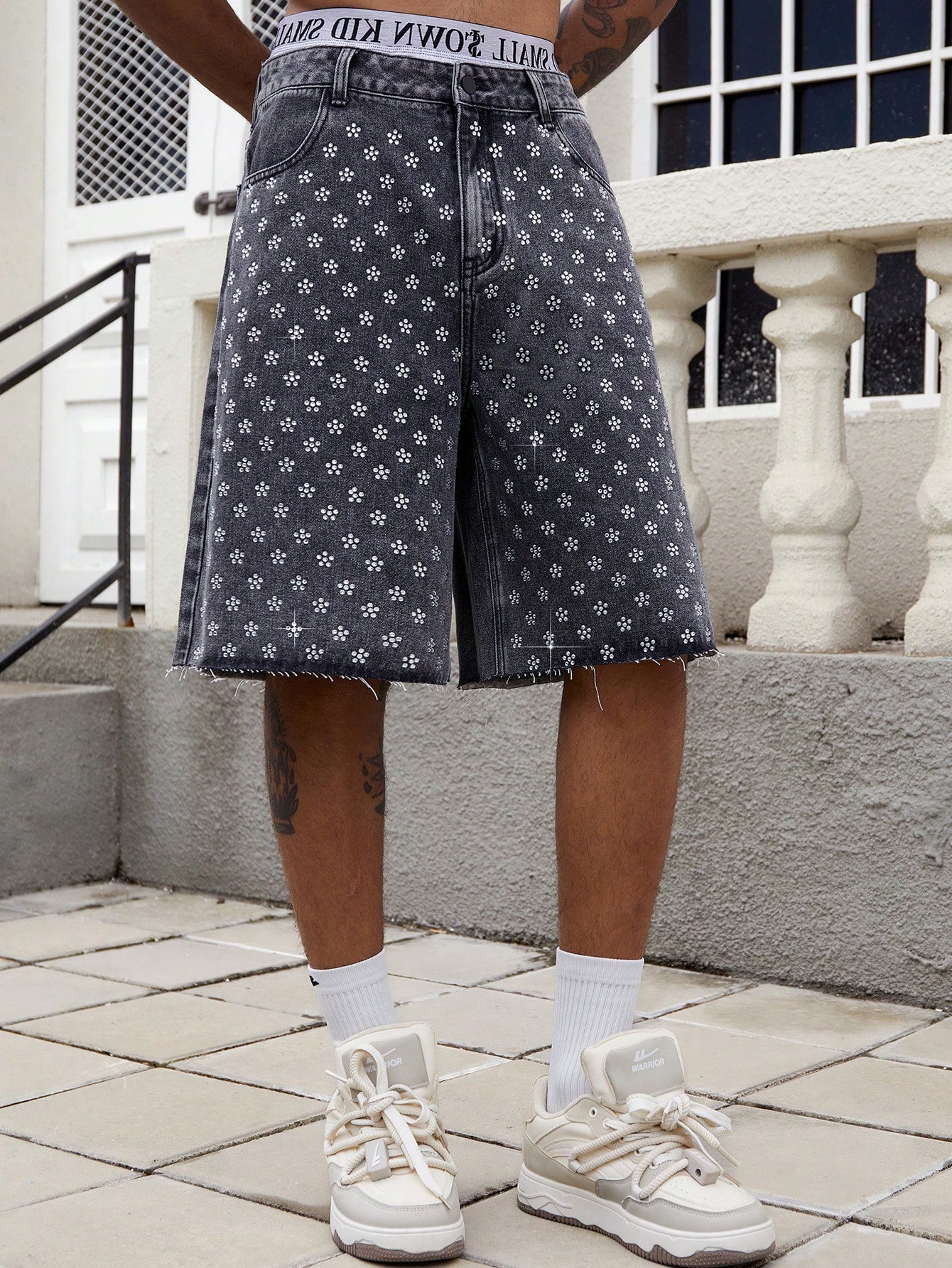 Street Life All-Over Printing Pocket Frayed Edge Casual Loose Denim Shorts