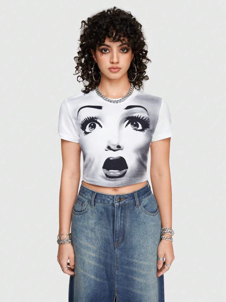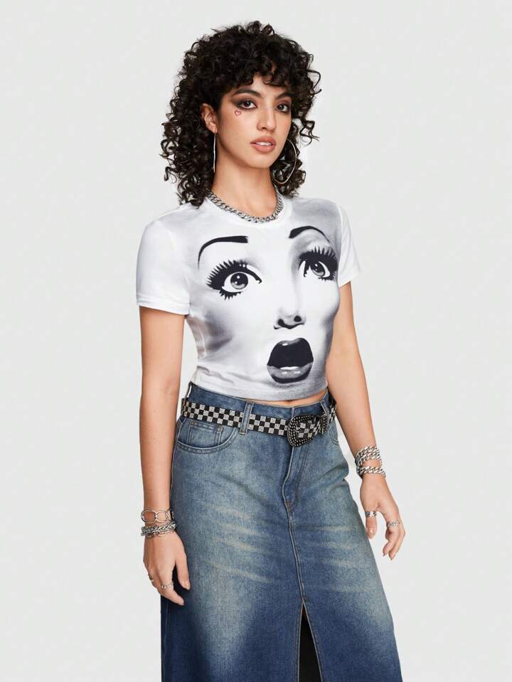 Street Life Avant-Garde Streetwear Sexy Tight Short Sleeve T-Shirt With Portrait Print