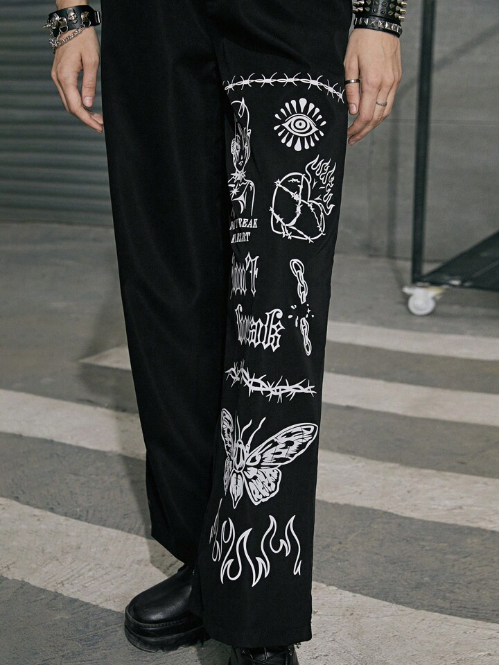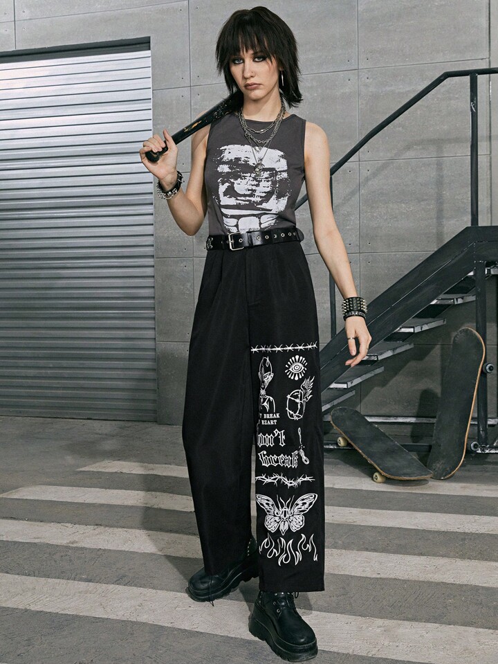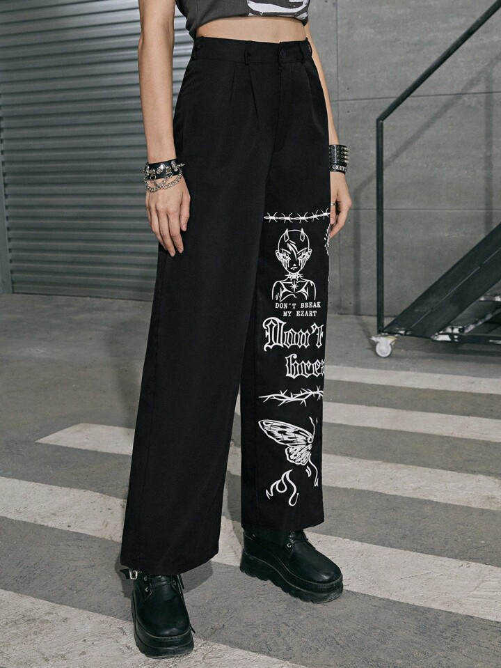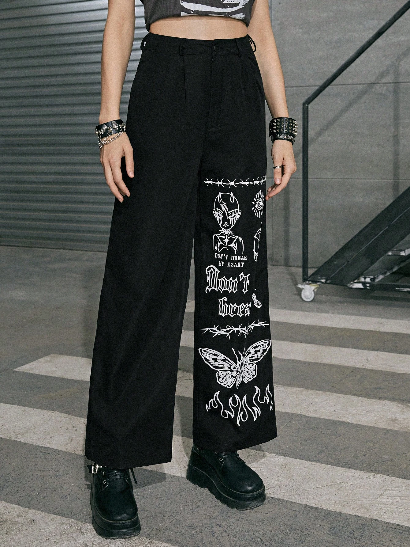 Street Life Butterfly & Letter Graphic Wide Leg Pants