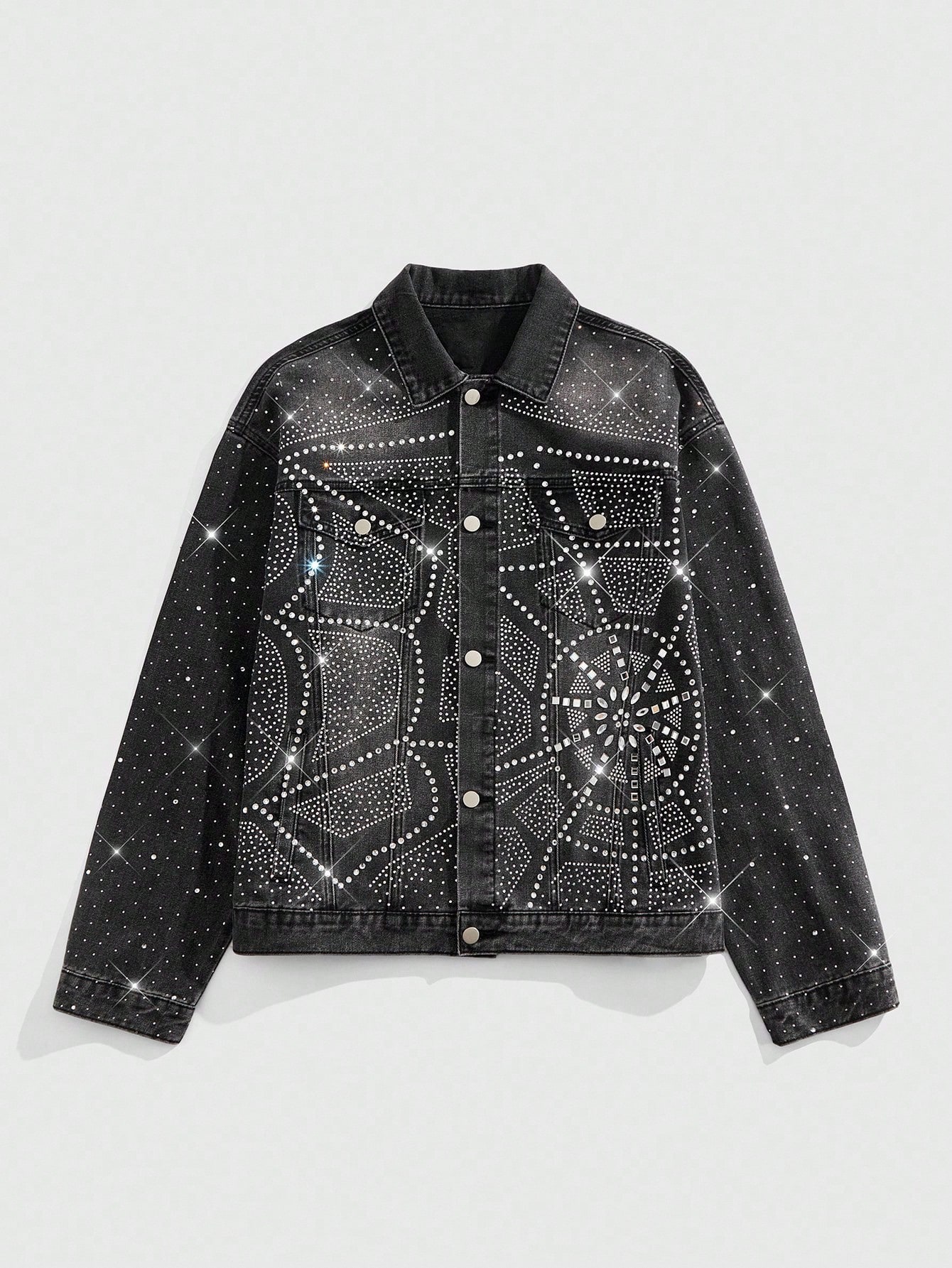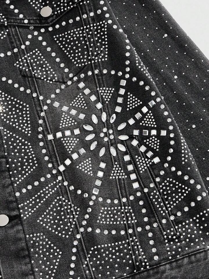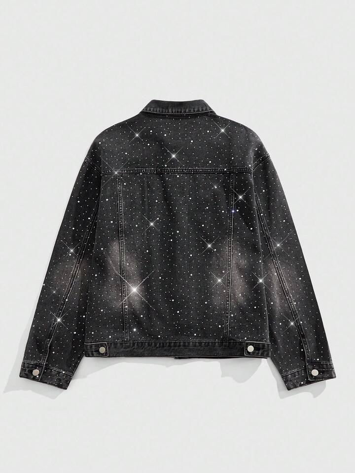 Street Life Casual Fashion Versatile Long Sleeve Men's Rhinestone Denim Jacket , Fall