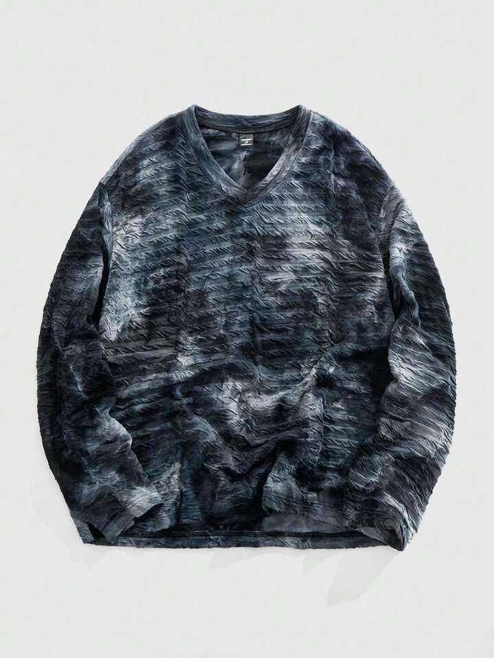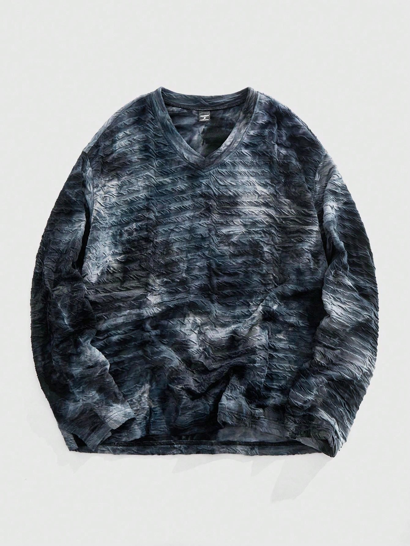Street Life Casual Long Sleeve Dark Texture Men T-Shirts, Versatile Everyday Wear, Fall