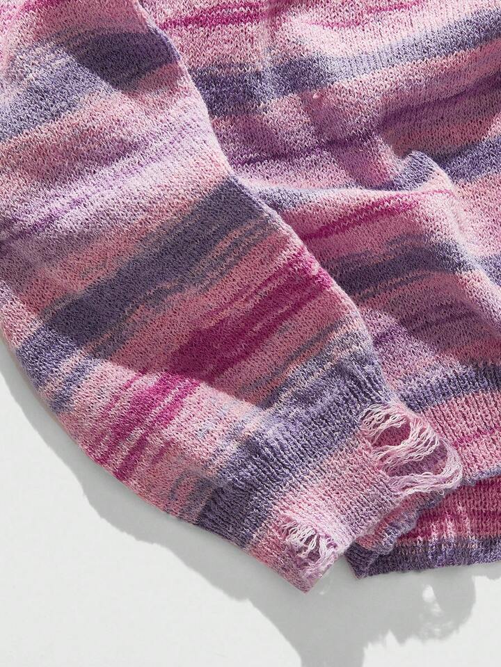 Street Life Casual Loose Fit Crew Neck Long Sleeve Pullover Striped Sweater For Men