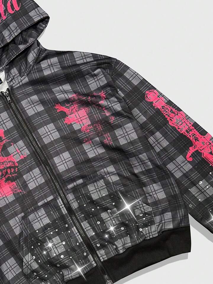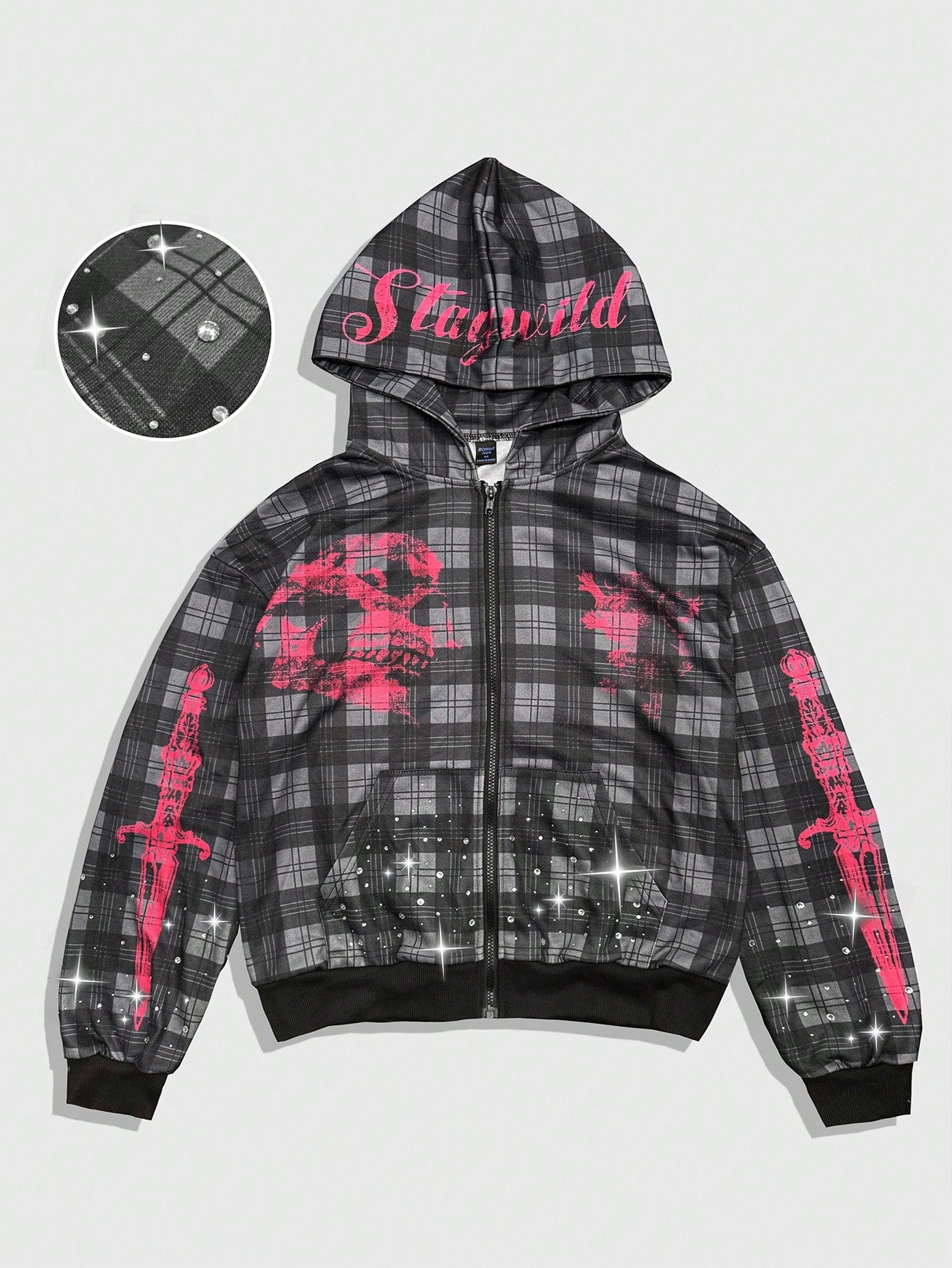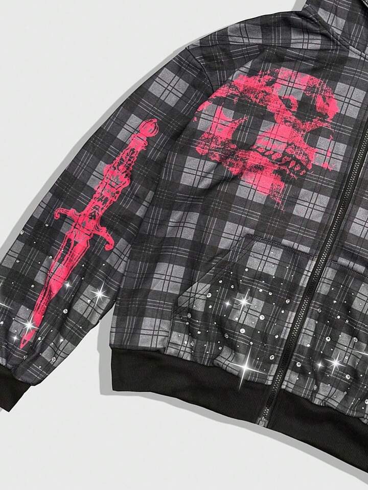 Street Life Casual Plaid Versatile Zip-Up Hooded Long Sleeve Men's Sweatshirt Sweatshirt