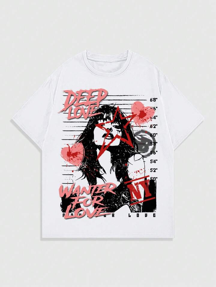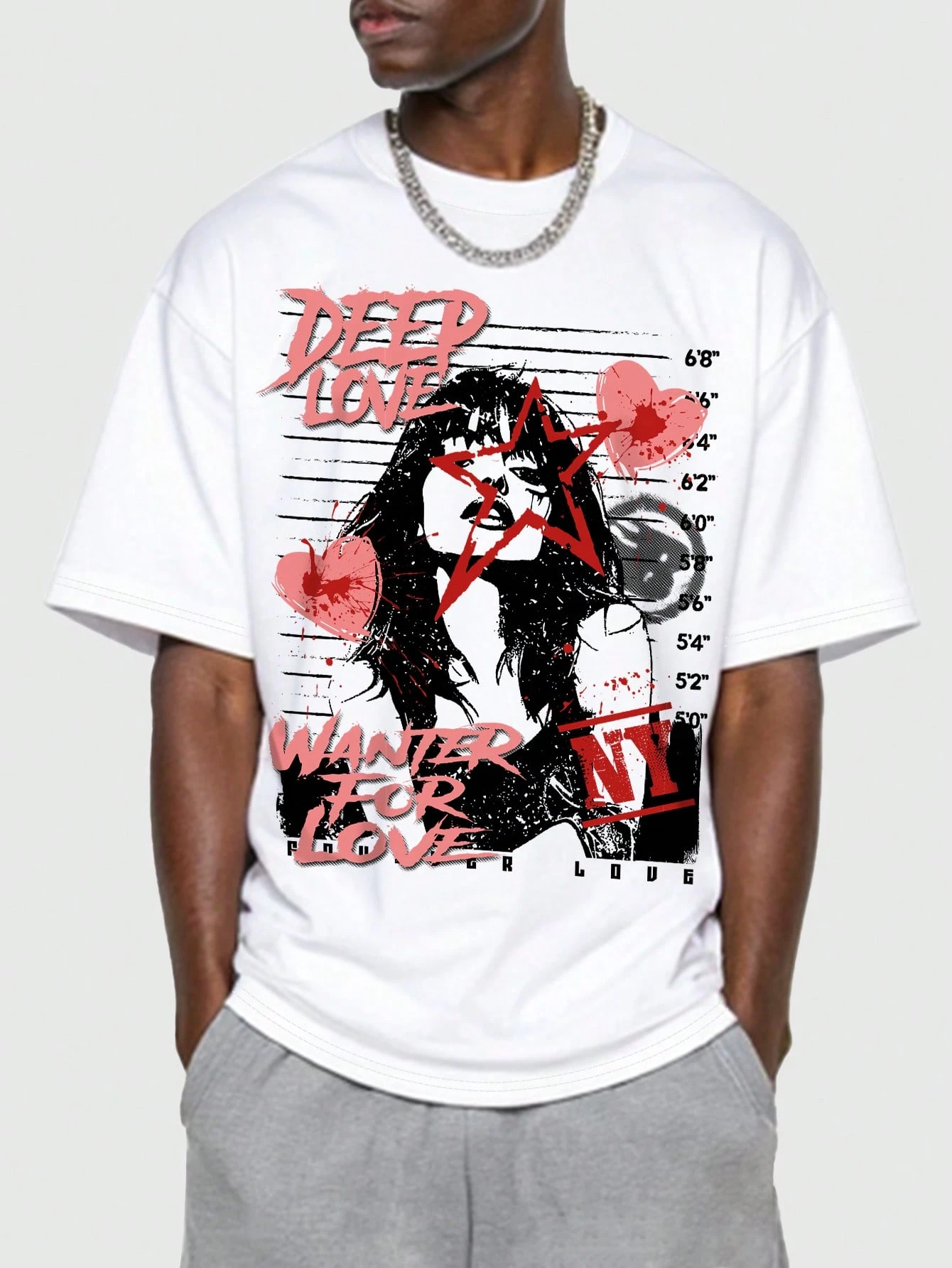 Street Life Couple's Graphic Printed Short Sleeve T-Shirt, Suitable For Everyday Wear In Spring/Summer, Love/Couples/XOXO/Kisses