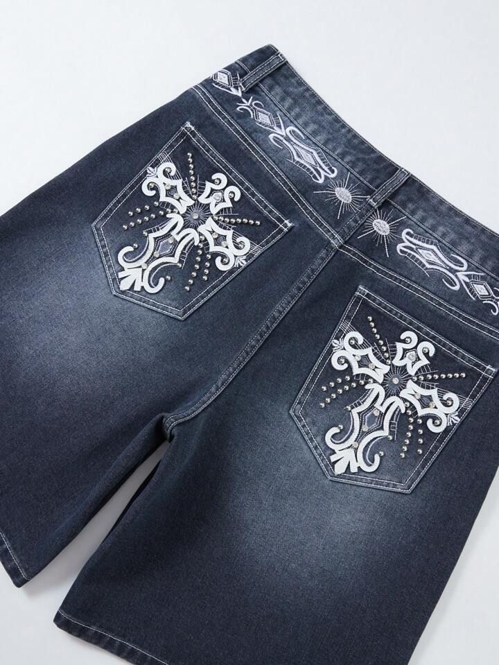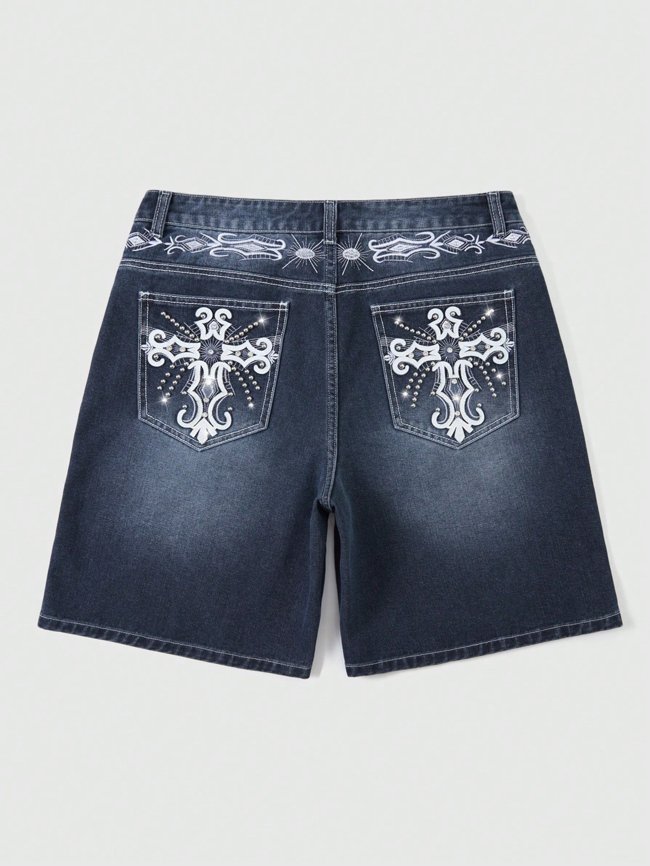 Street Life Goth Men's Cross Print Pocket Casual Versatile Denim Shorts, Halloween