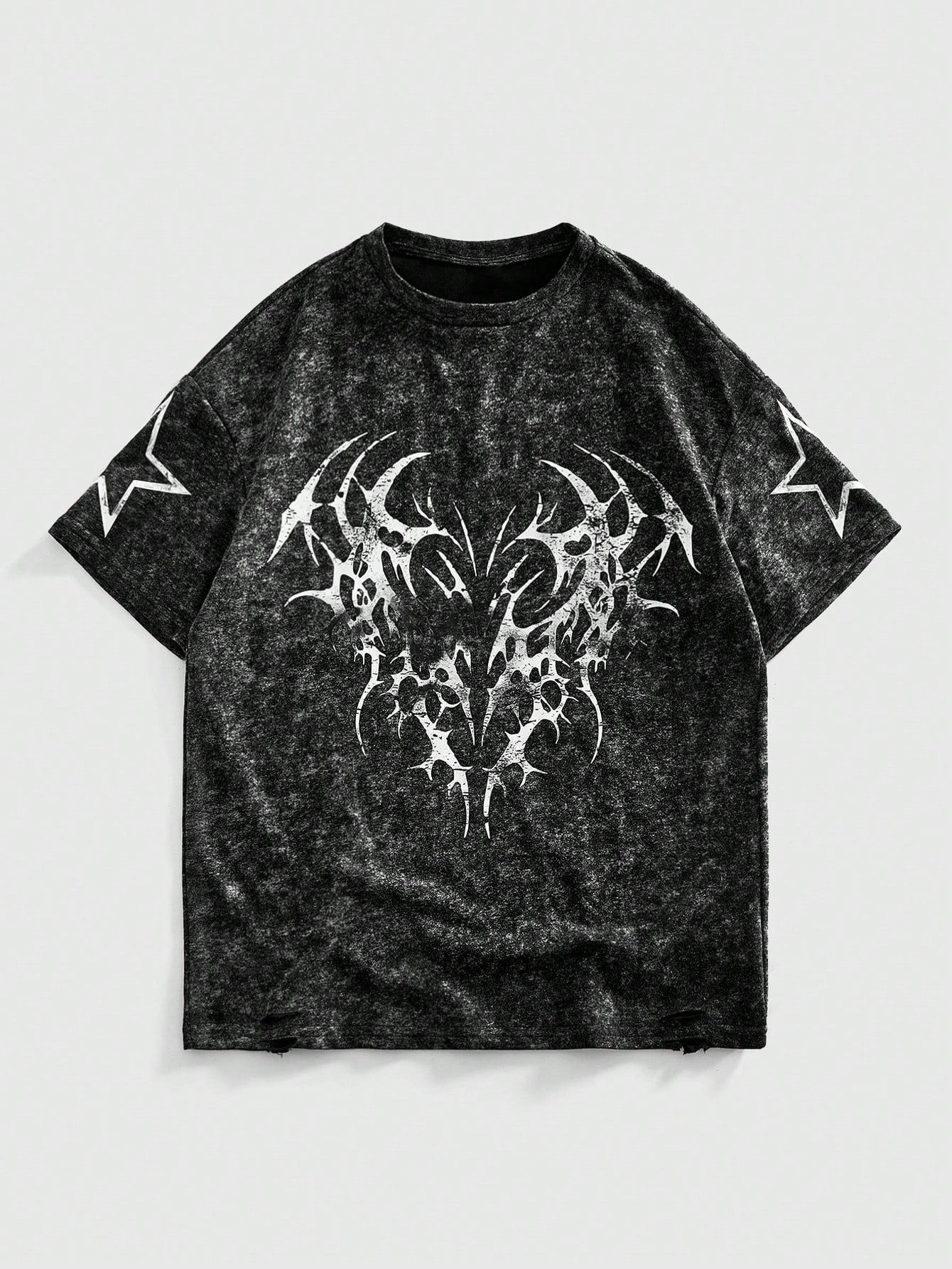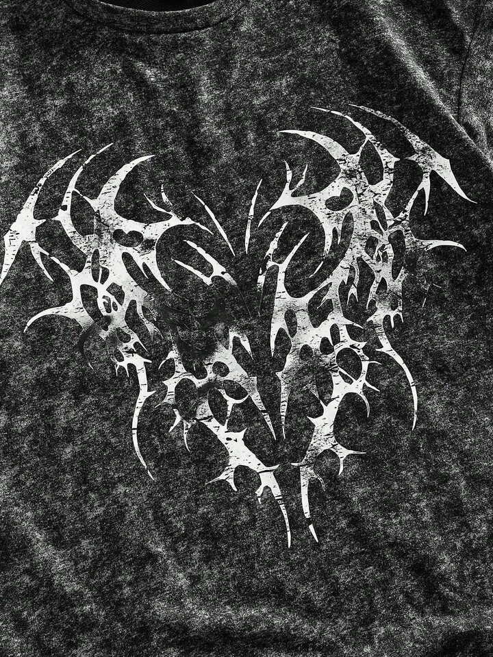 Street Life Grunge Punk Summer Gothic Star Print Round Neck Short Sleeve T-Shirt, 2000s Style