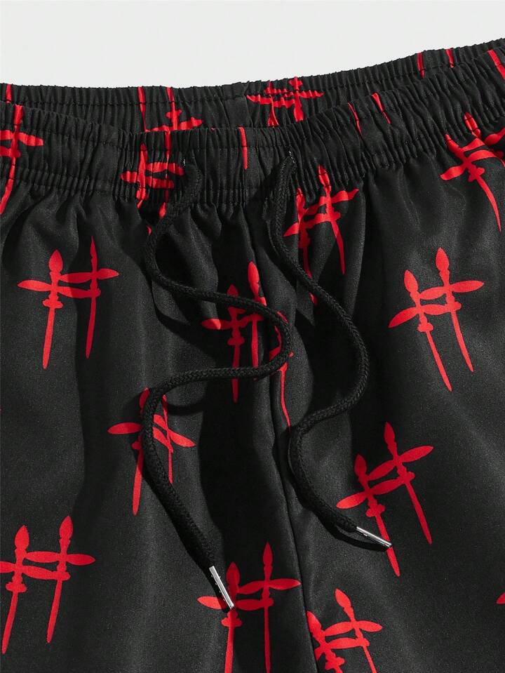 Street Life Guys Allover Cross Print Drawstring Waist Shorts