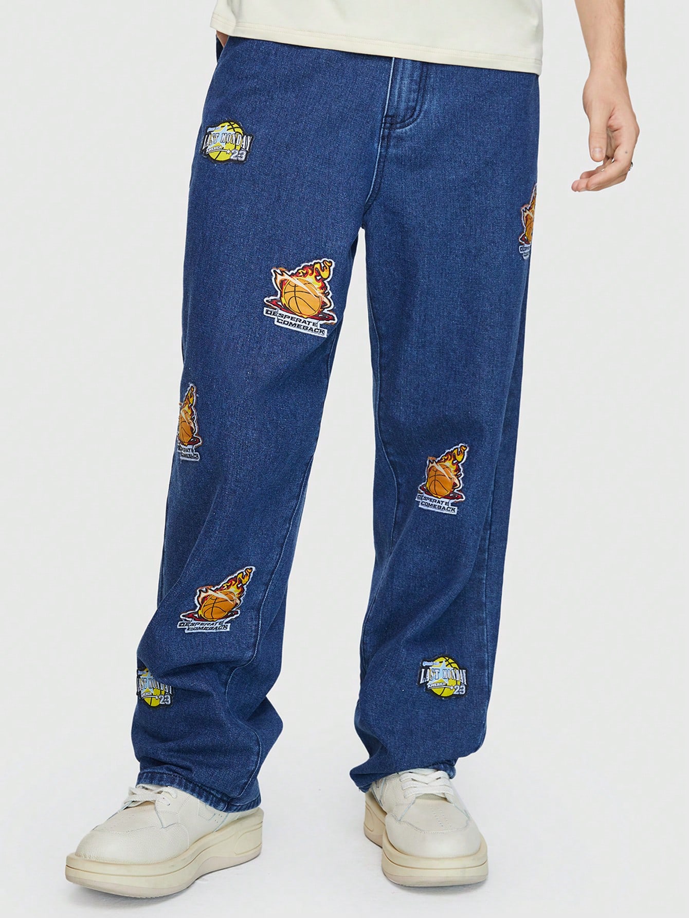 Street Life Guys Basketball Patched Straight Leg Jeans