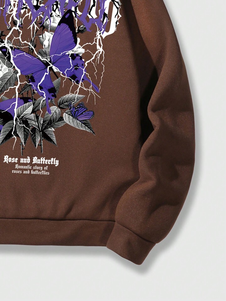 Street Life Guys Butterfly & Slogan Graphic Drawstring Thermal Lined Hoodie
