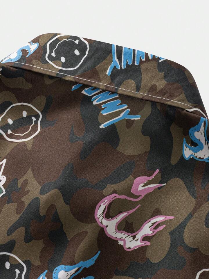 Street Life Guys Camo Allover Print Button Up Shirt