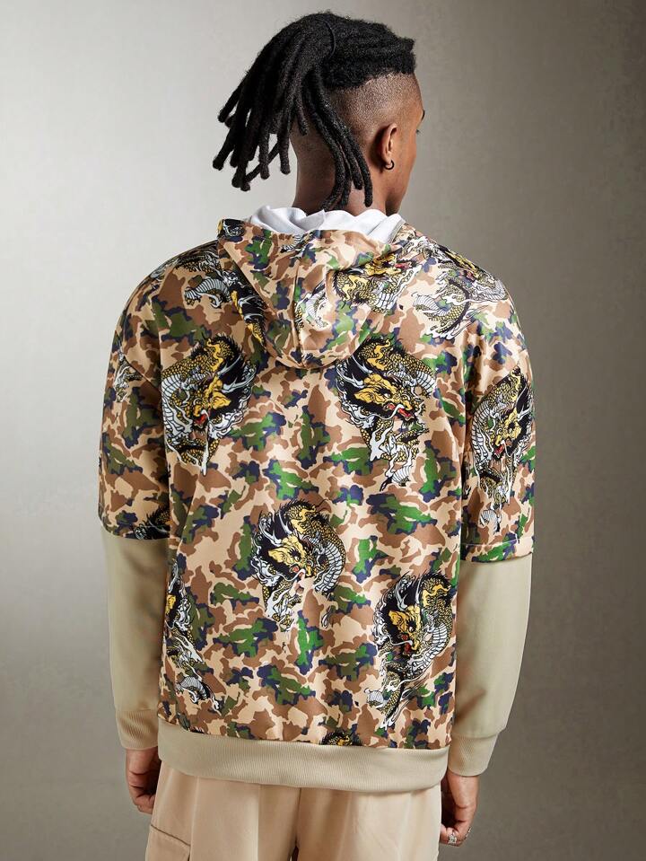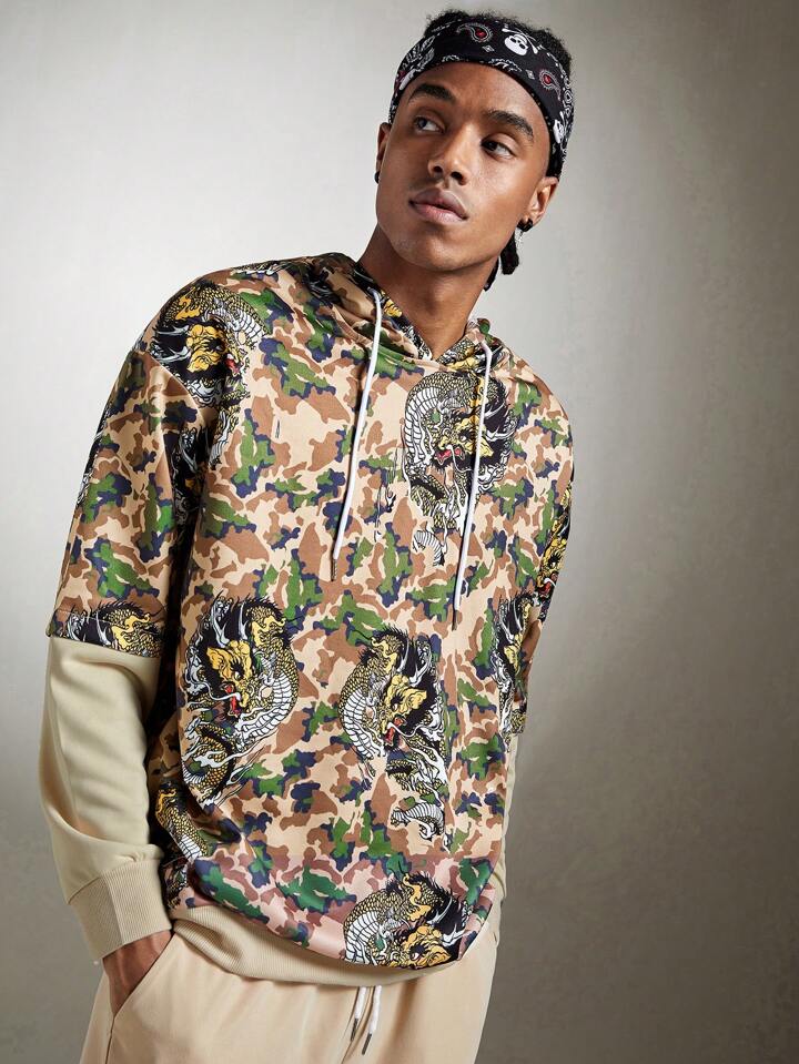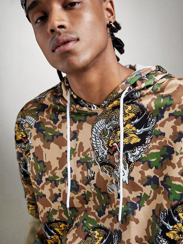 Street Life Guys Camo Dragon Print Drawstring Hoodie