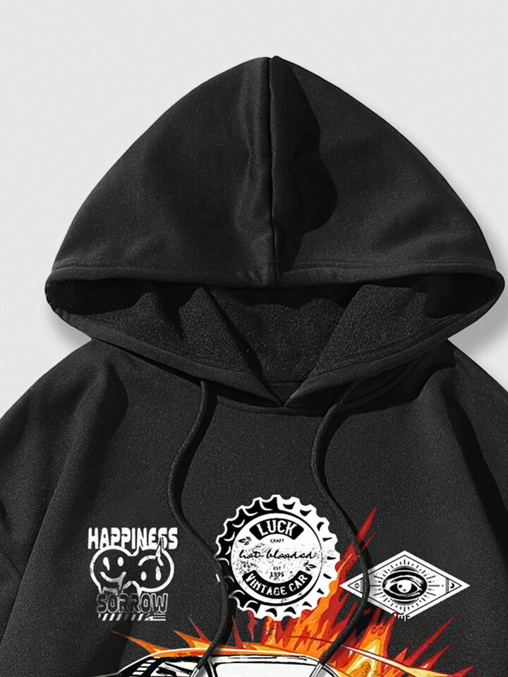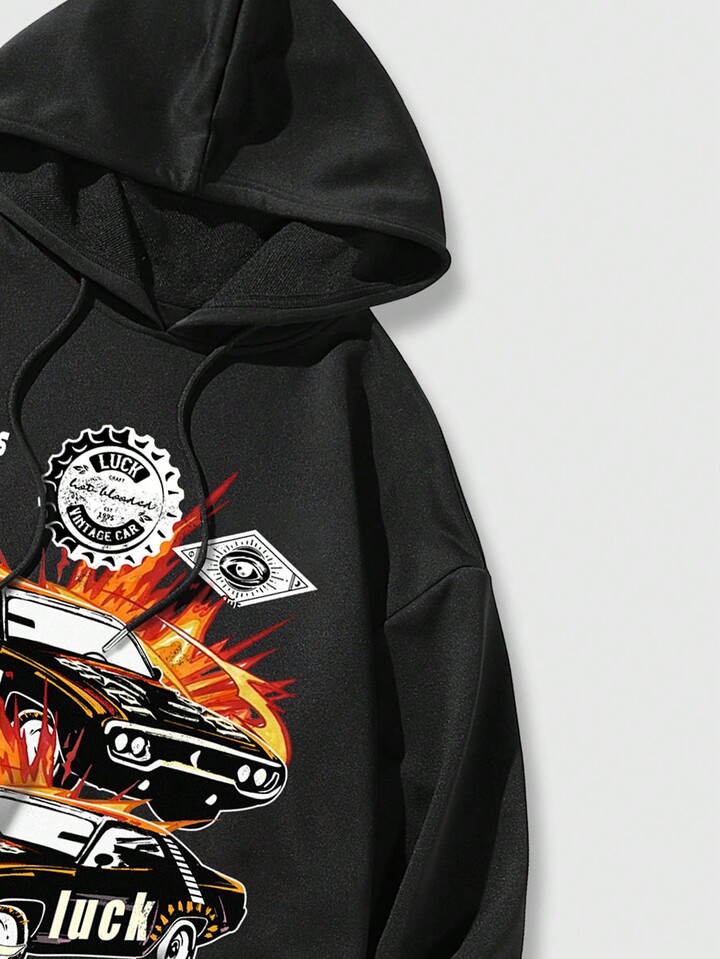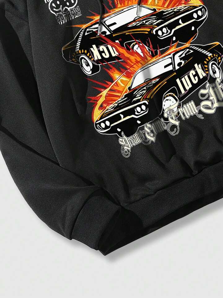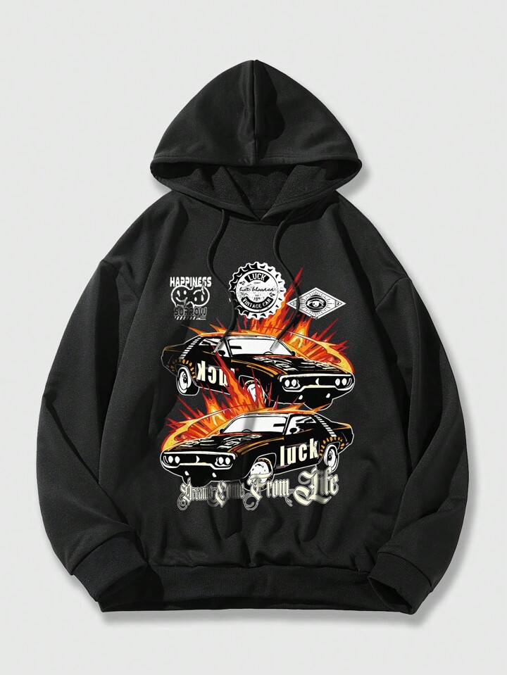 Street Life Guys Car & Letter Graphic Drawstring Hoodie