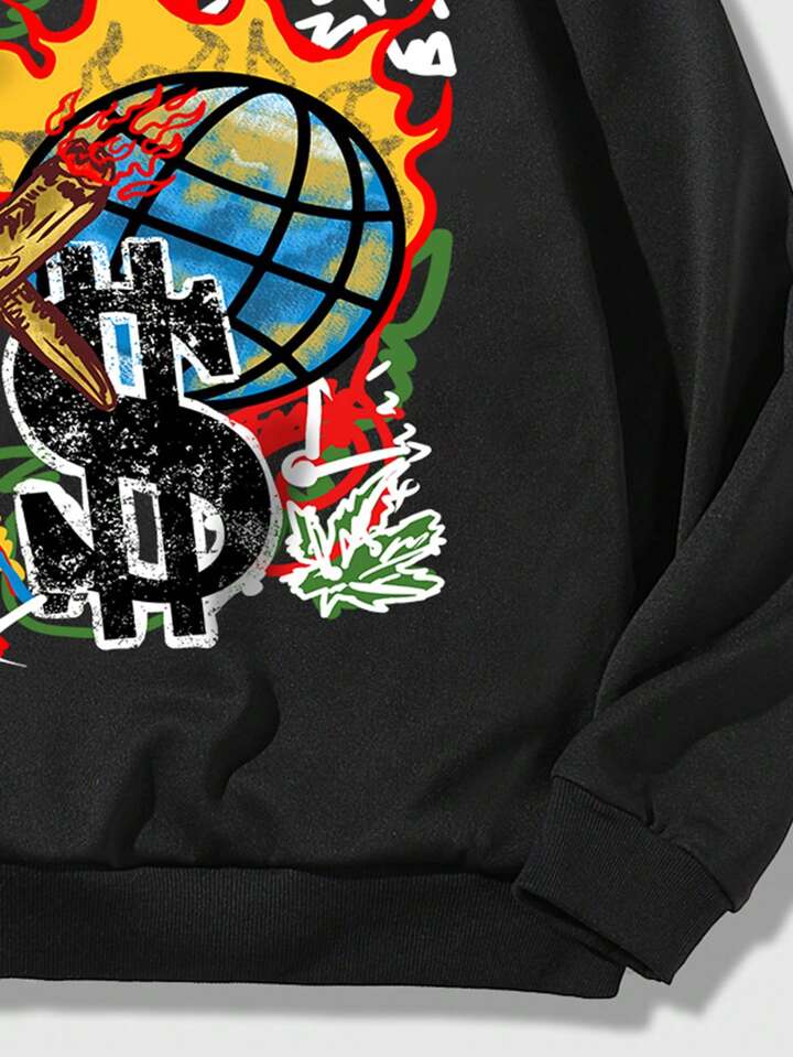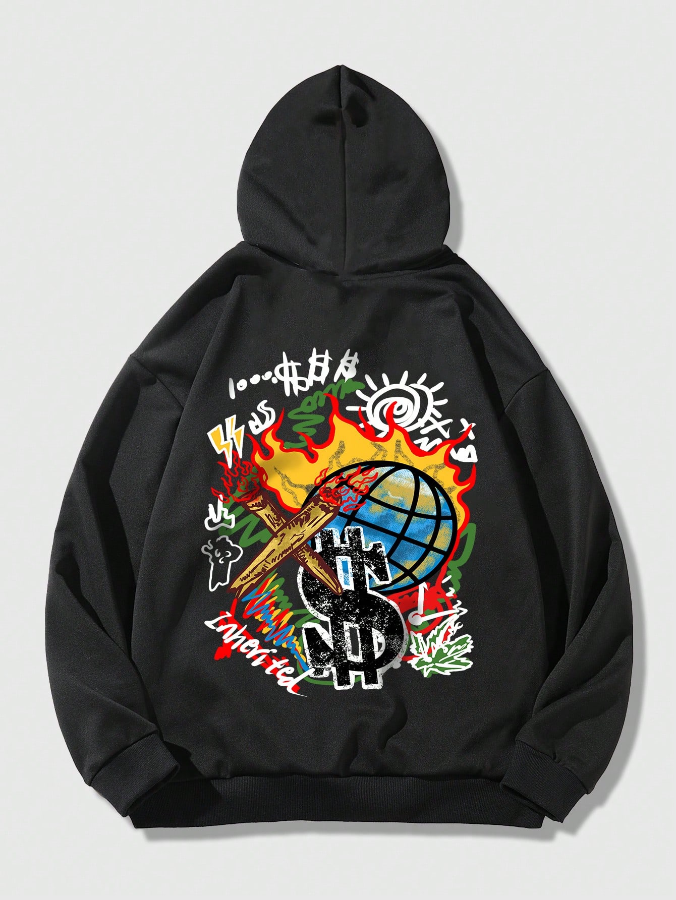 Street Life Guys Cartoon & Letter Graphic Drop Shoulder Hoodie