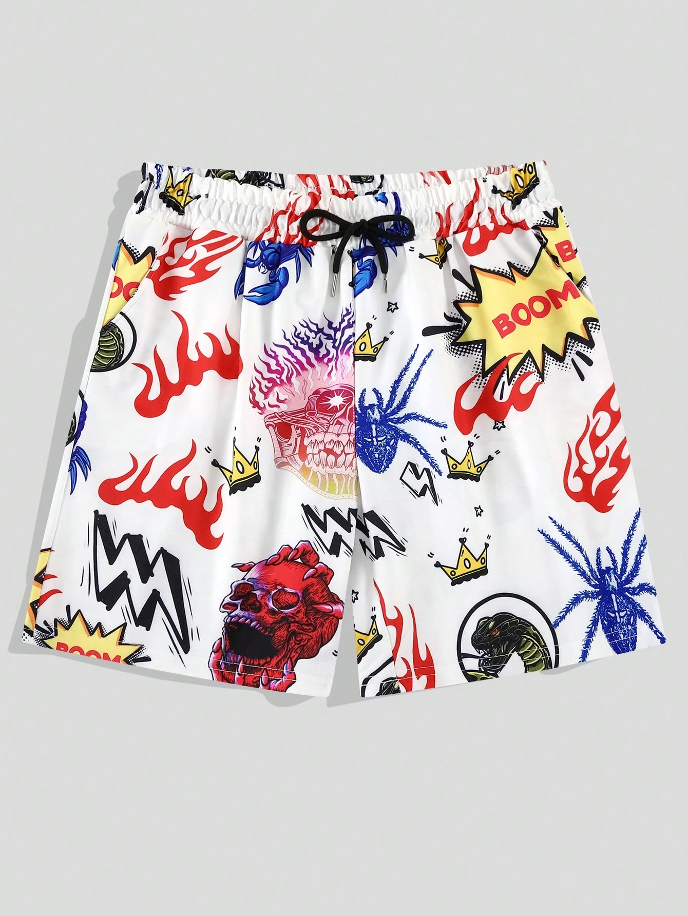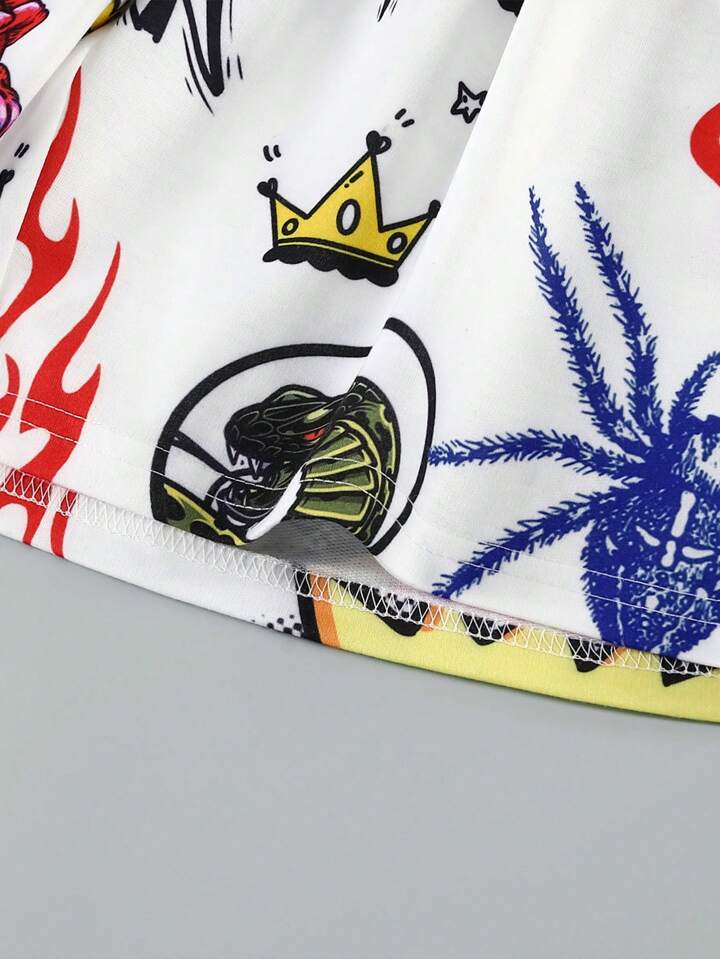 Street Life Guys Graffiti Print Drawstring Waist Shorts