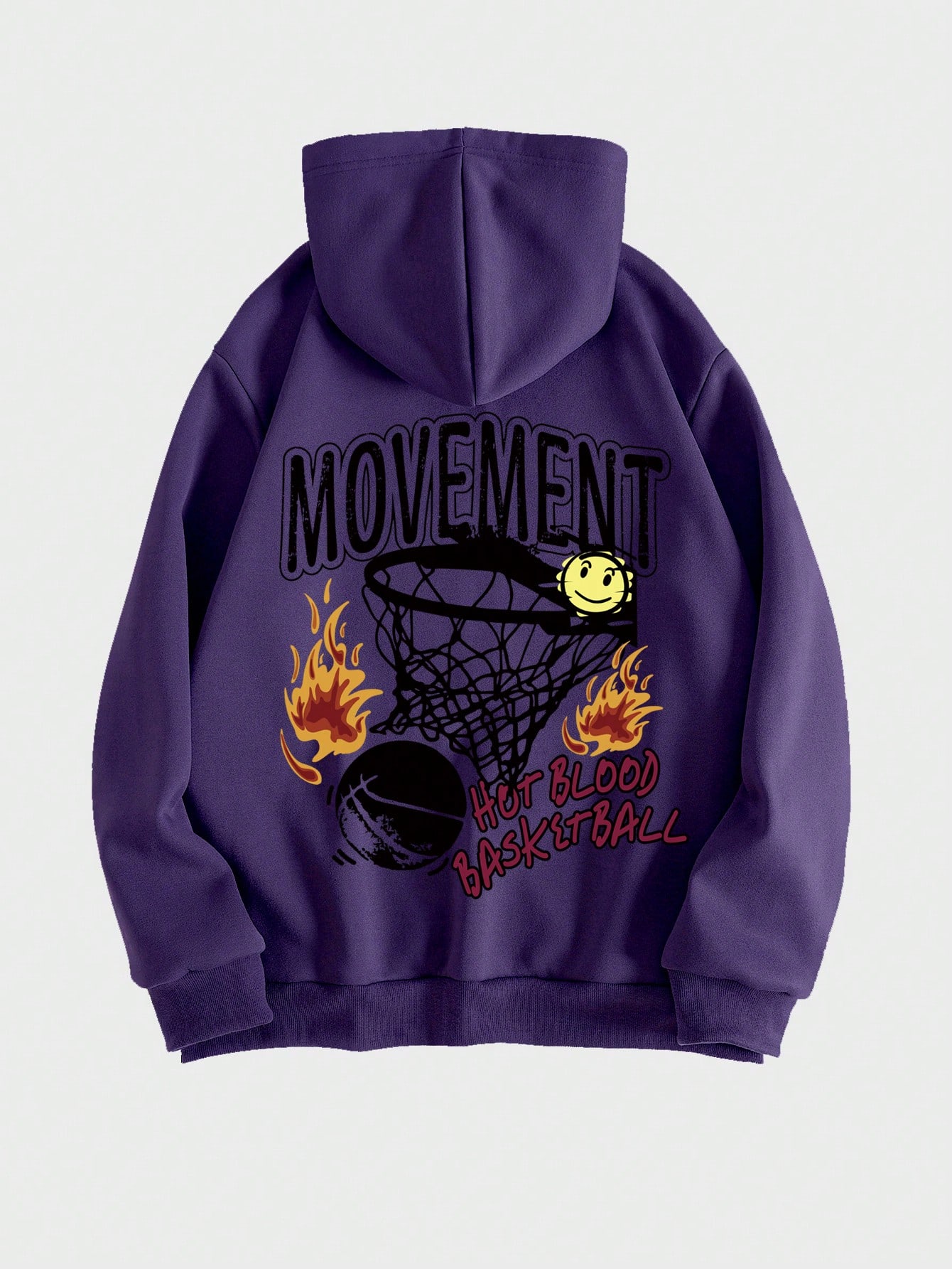 Street Life Guys Letter & Basketball Print Thermal Hoodie