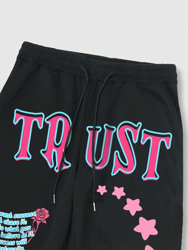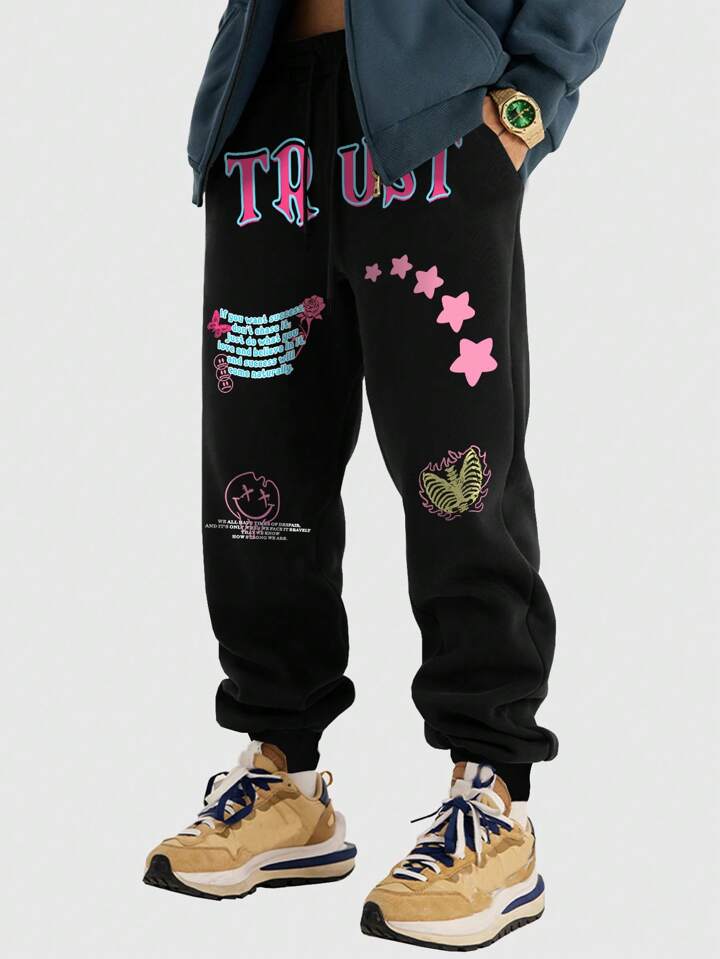 Street Life Guys Letter & Cartoon Graphic Drawstring Waist Sweatpants