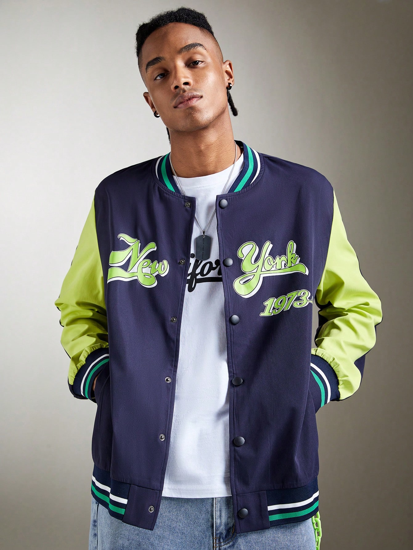 Street Life Guys Letter Colorblock Button Front Bomber Jacket