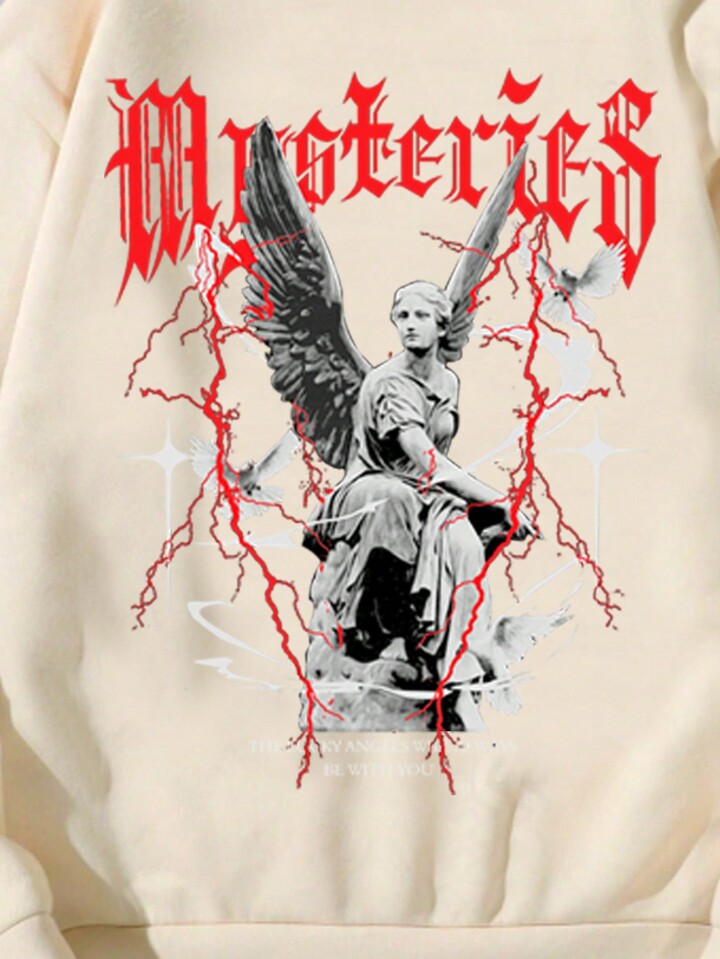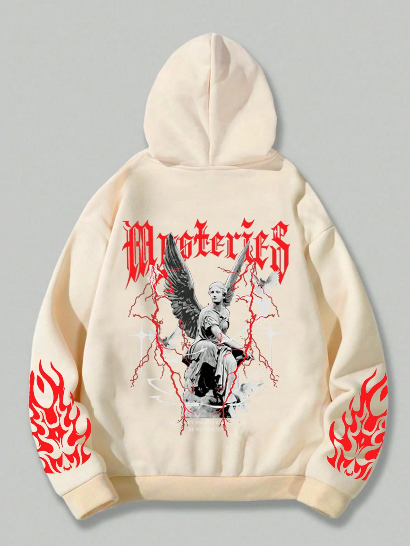 Street Life Guys Letter & Figure Graphic Kangaroo Pocket Drawstring Thermal Hoodie