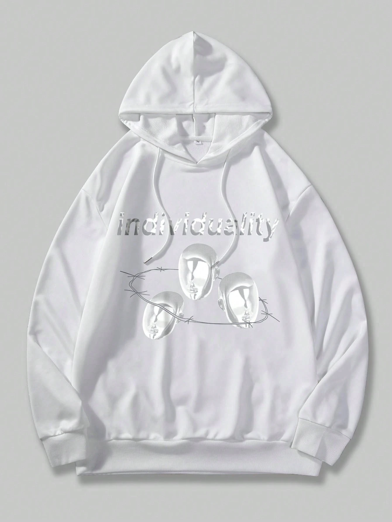 Street Life Guys Letter Graphic Drawstring Hoodie