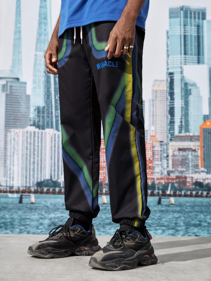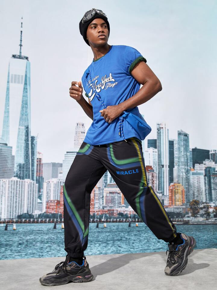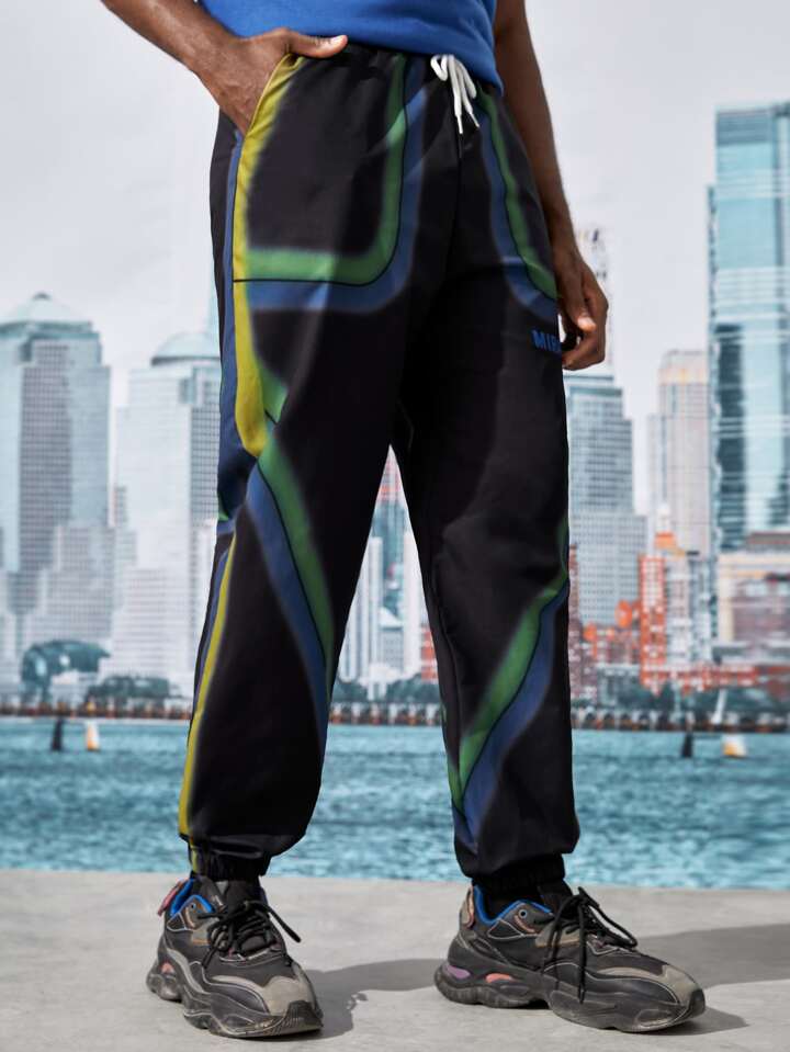 Street Life Guys Letter Graphic Drawstring Waist Pants