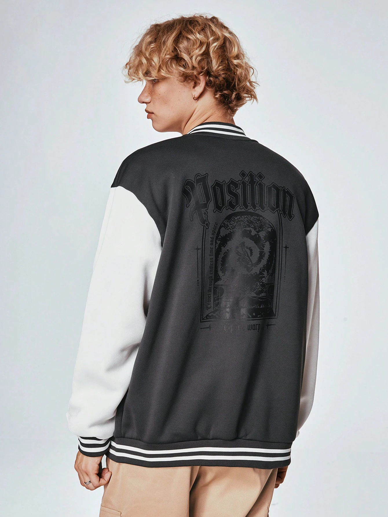 Street Life Guys Letter Graphic Two Tone Striped Trim Slogan Graphic Varsity Jacket